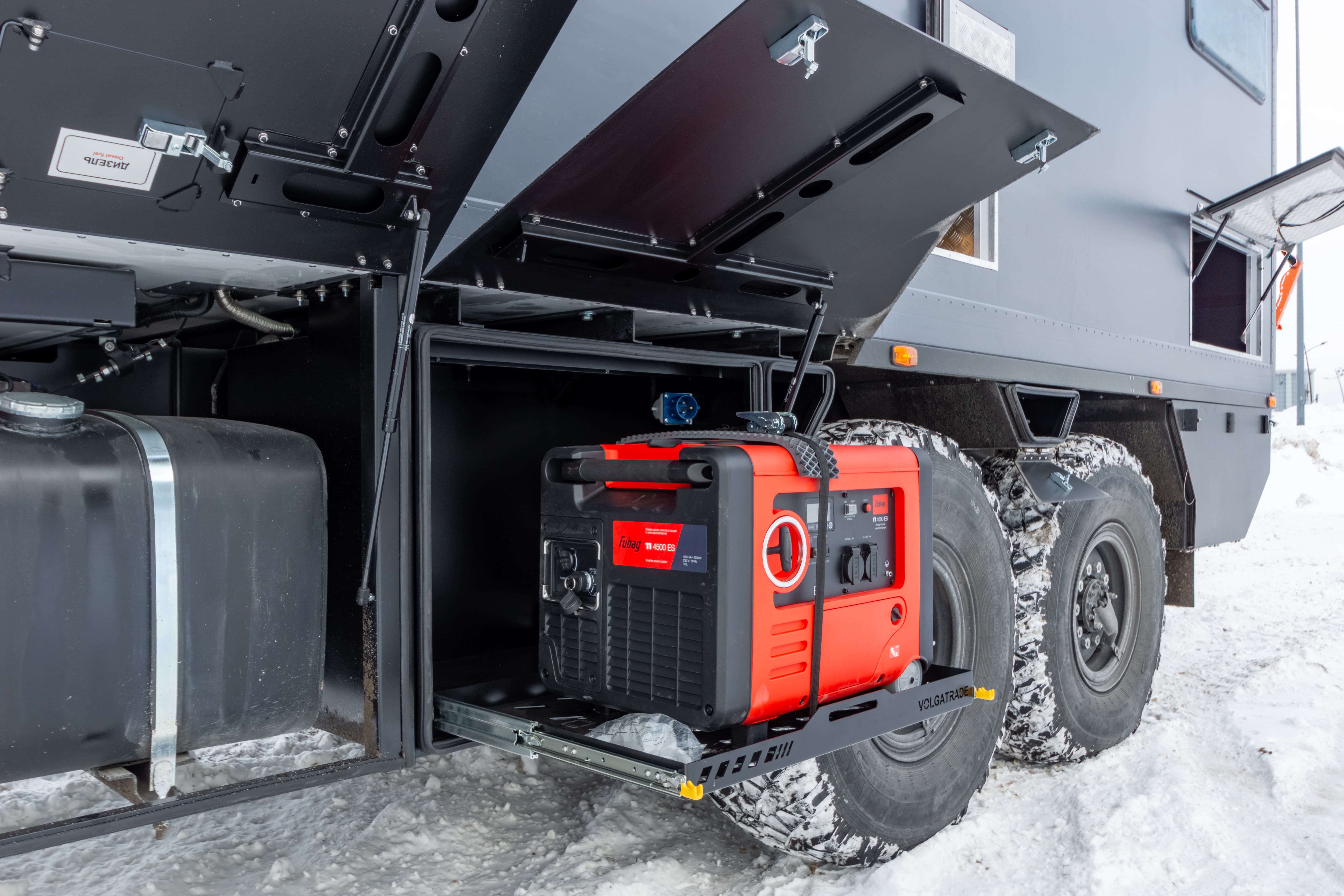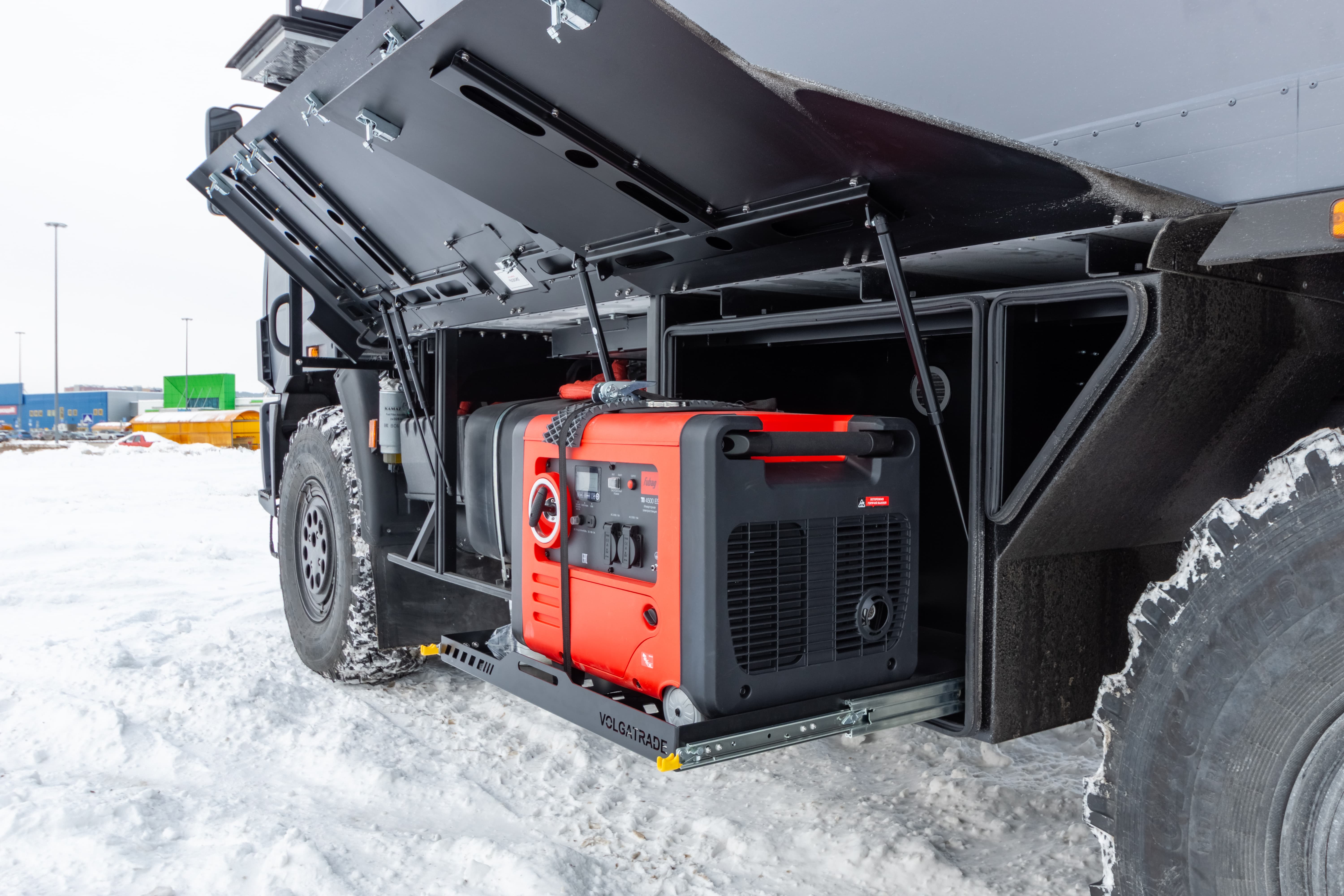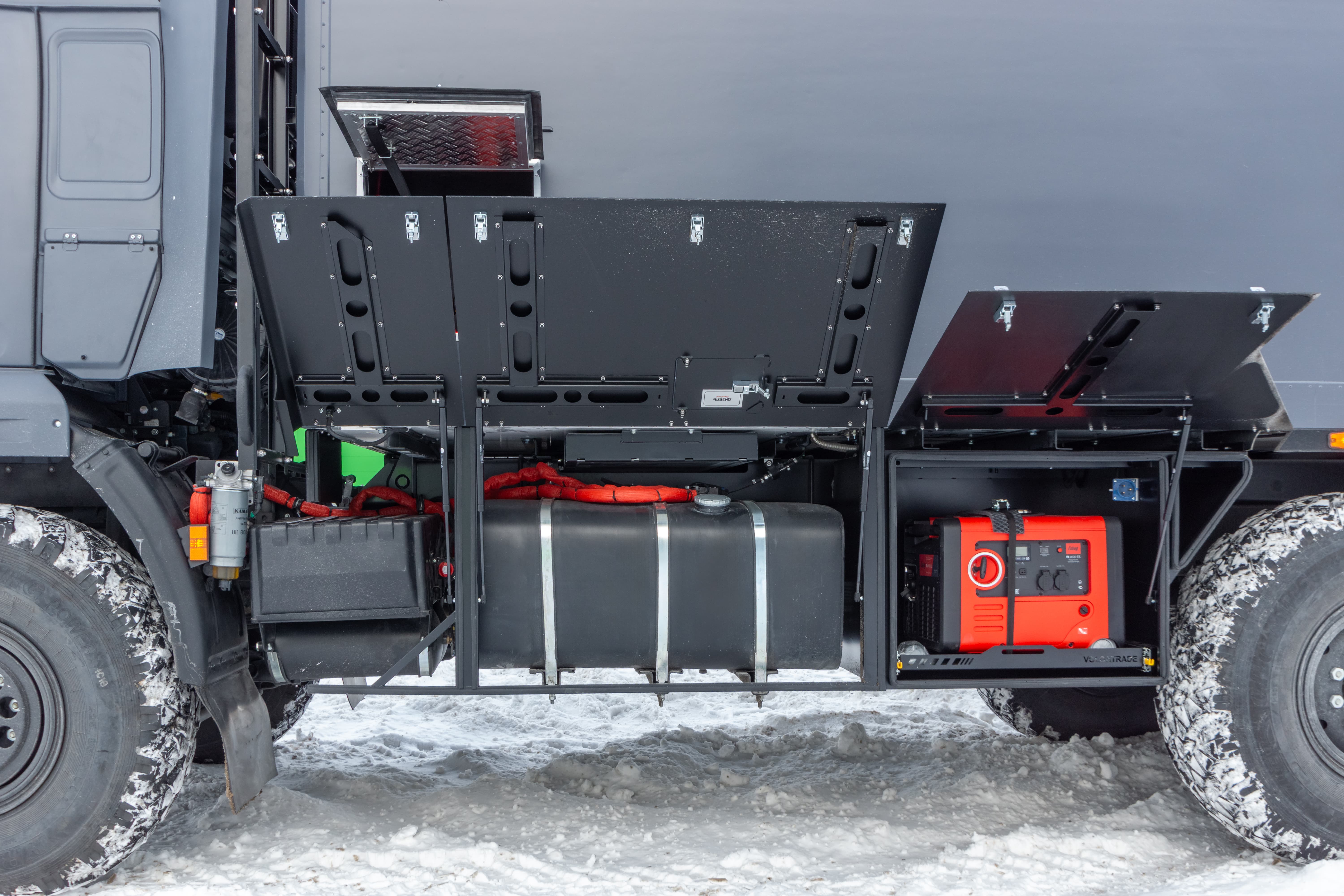• Ящик для хранения генератора на левом борту автофургона