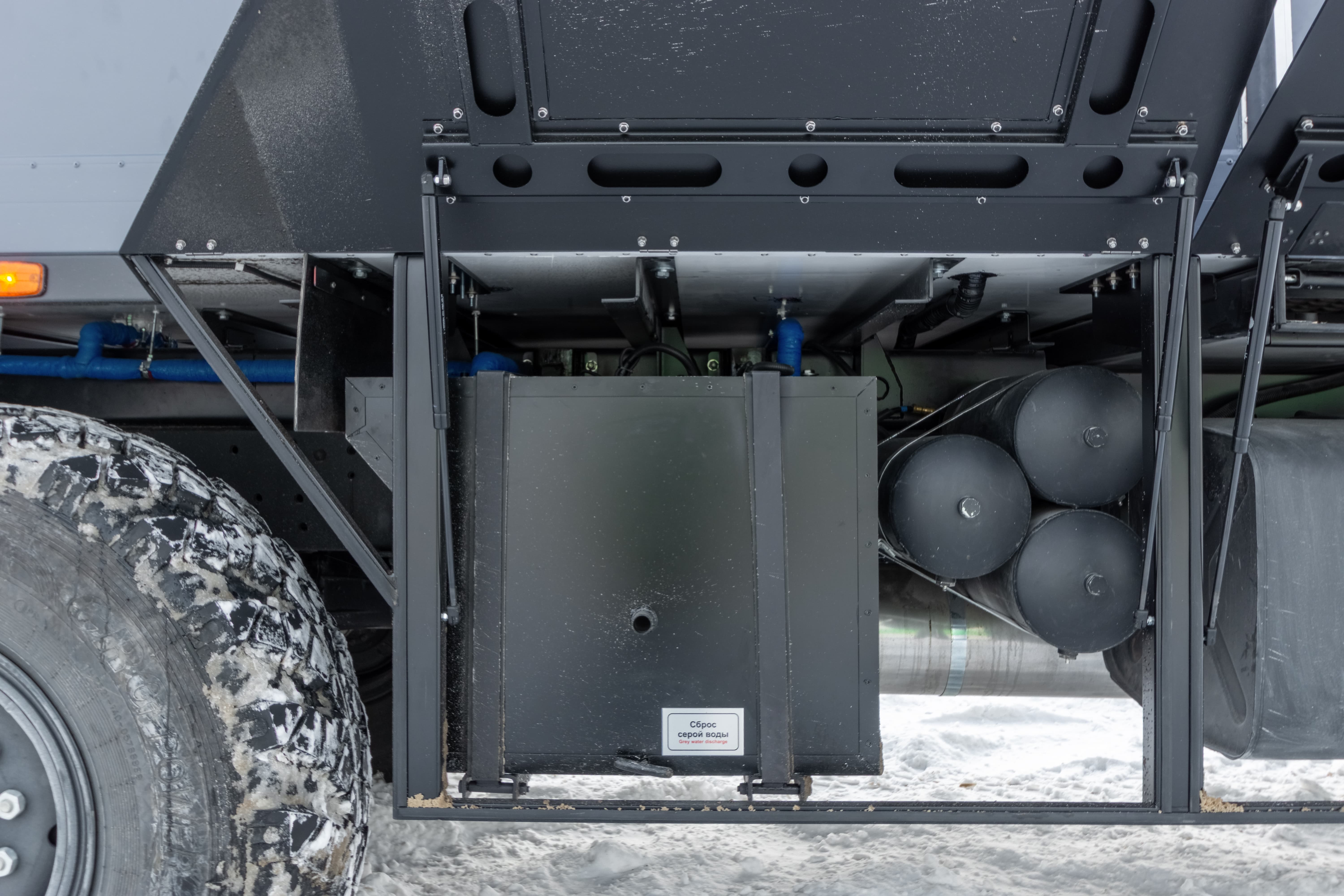 • Короб для отведения слива из системы водоснабжения и бака чистой воды на элементы шасси.