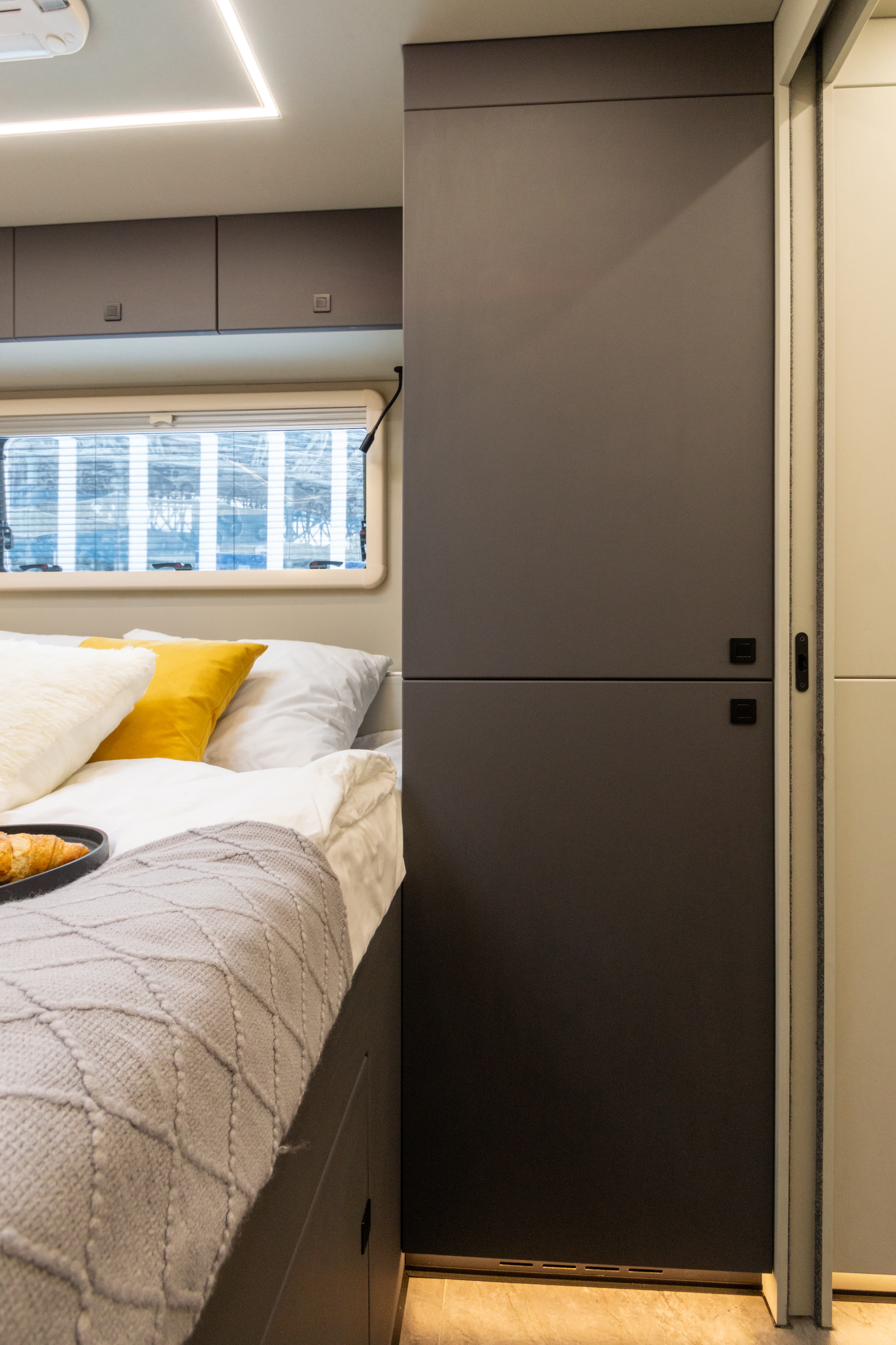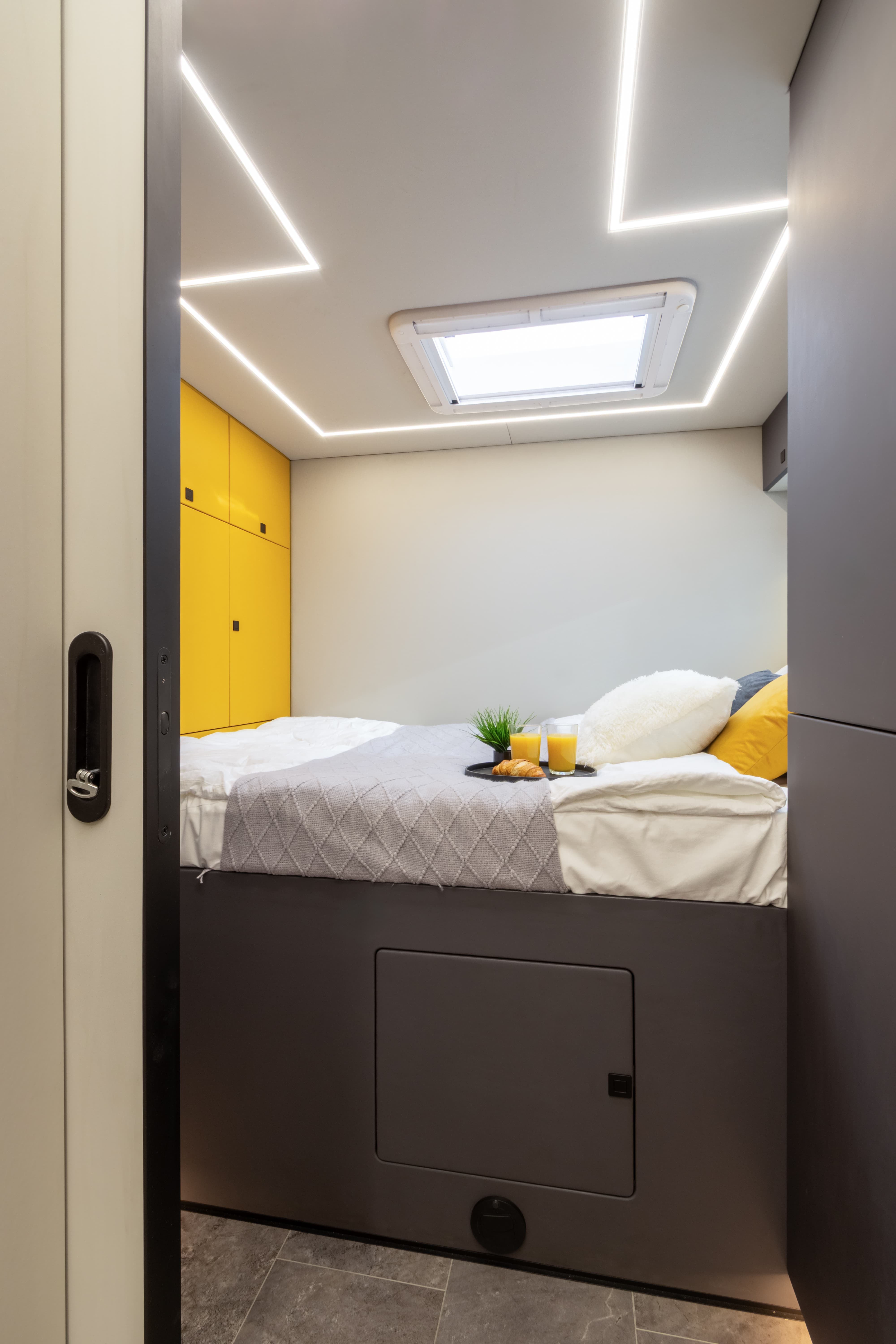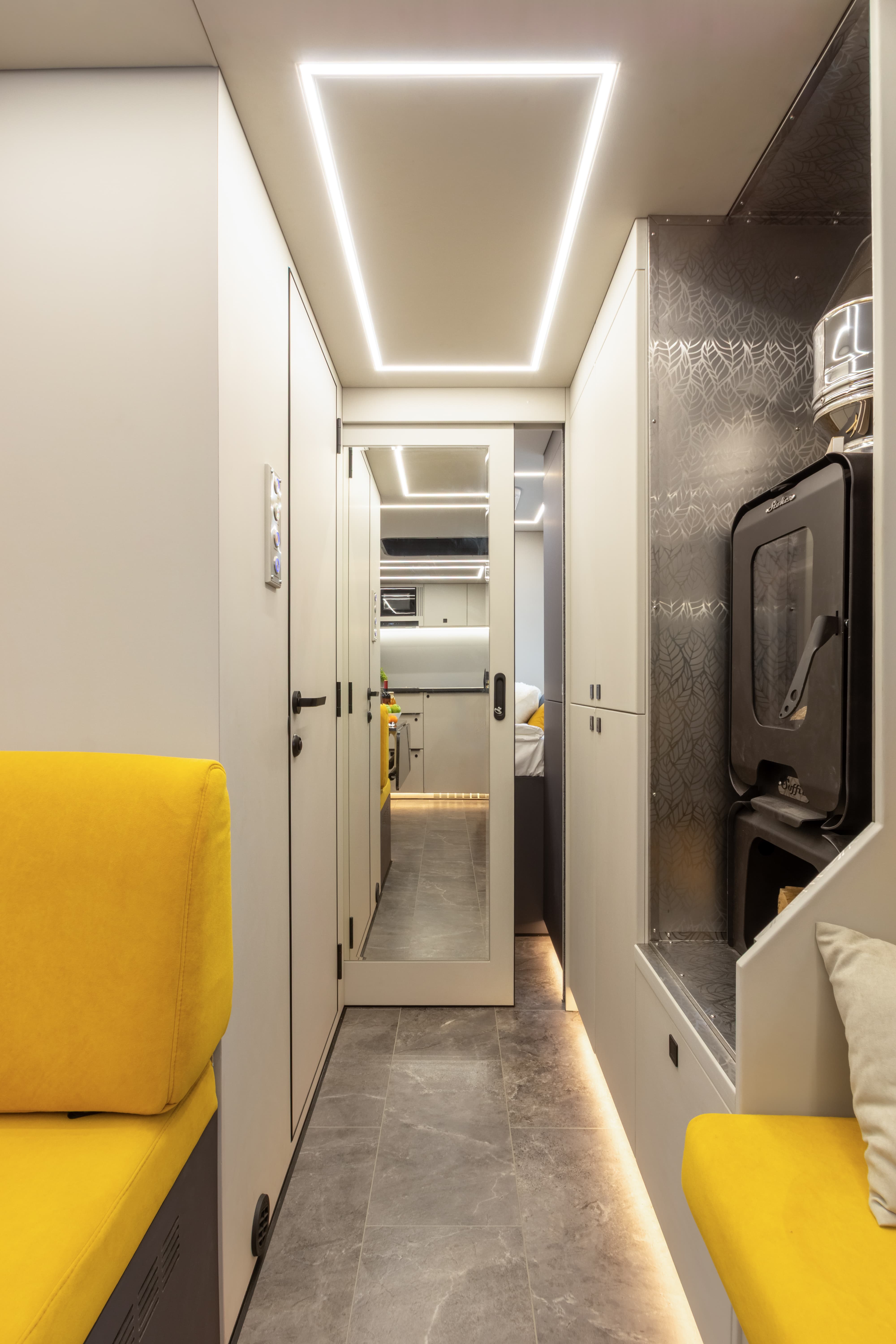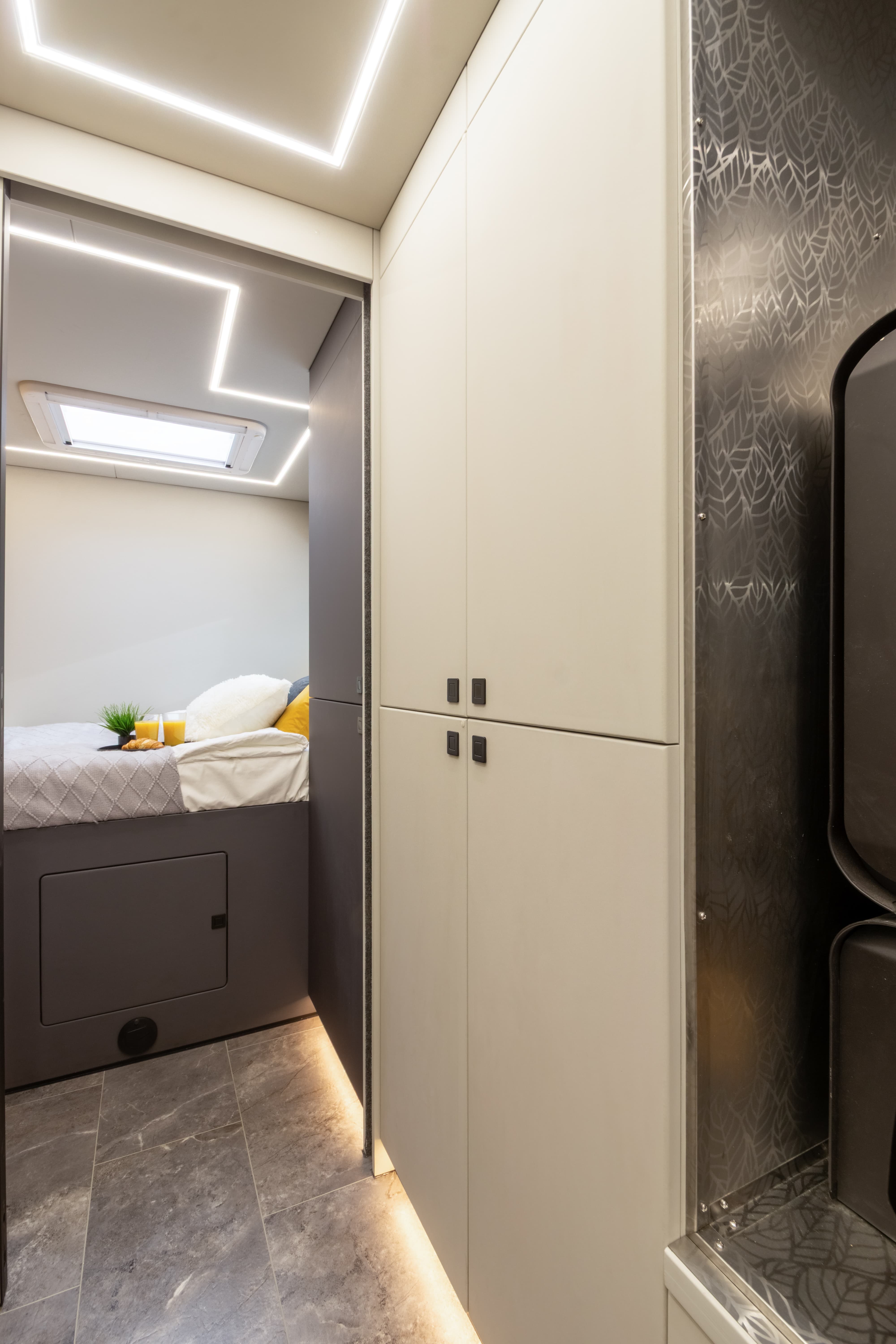 • Перегородка между спальным отсеком со сдвижной дверью с замком и зеркалом снаружи