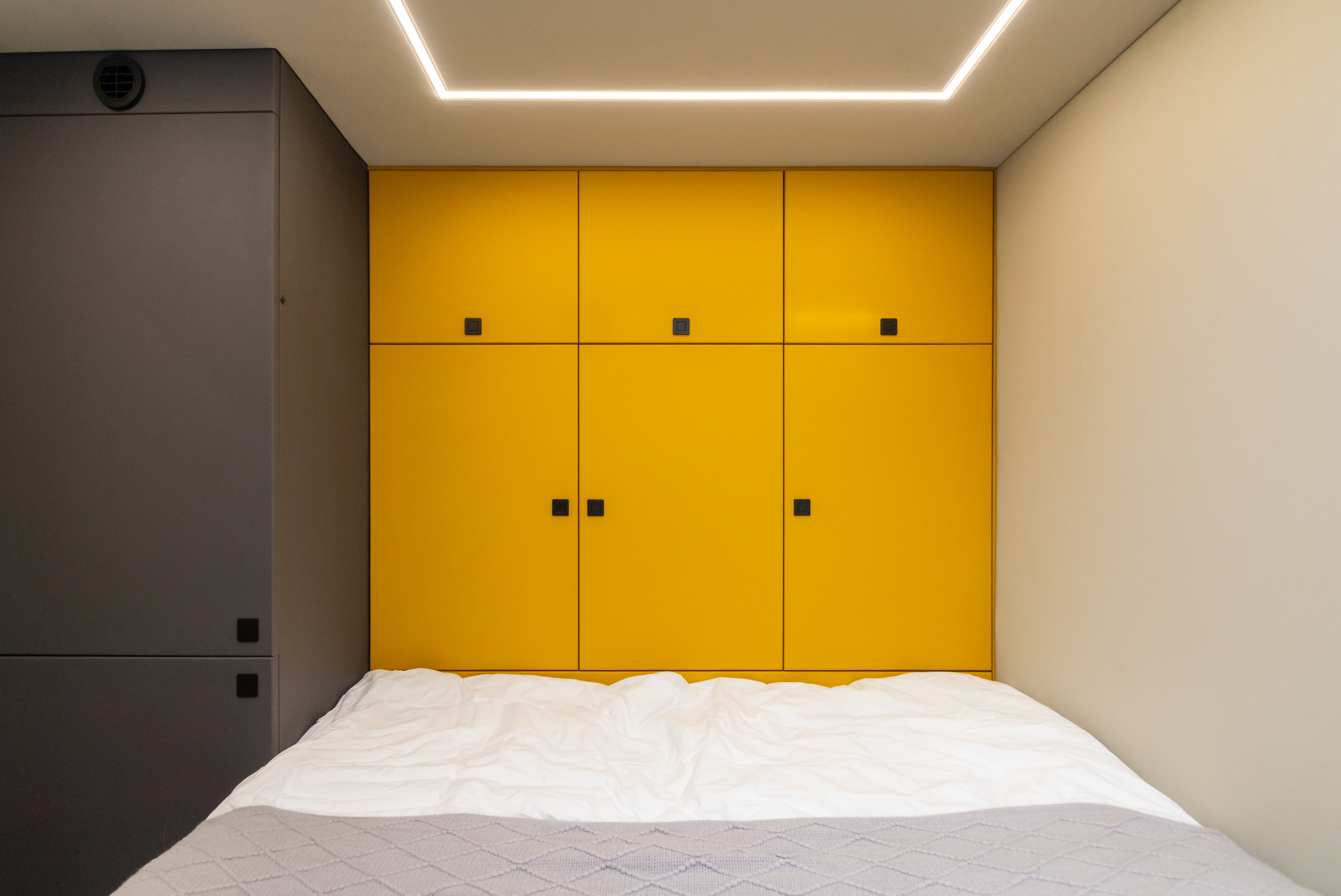 • Короб для размещения выдвижного экрана над спальником-трансформером