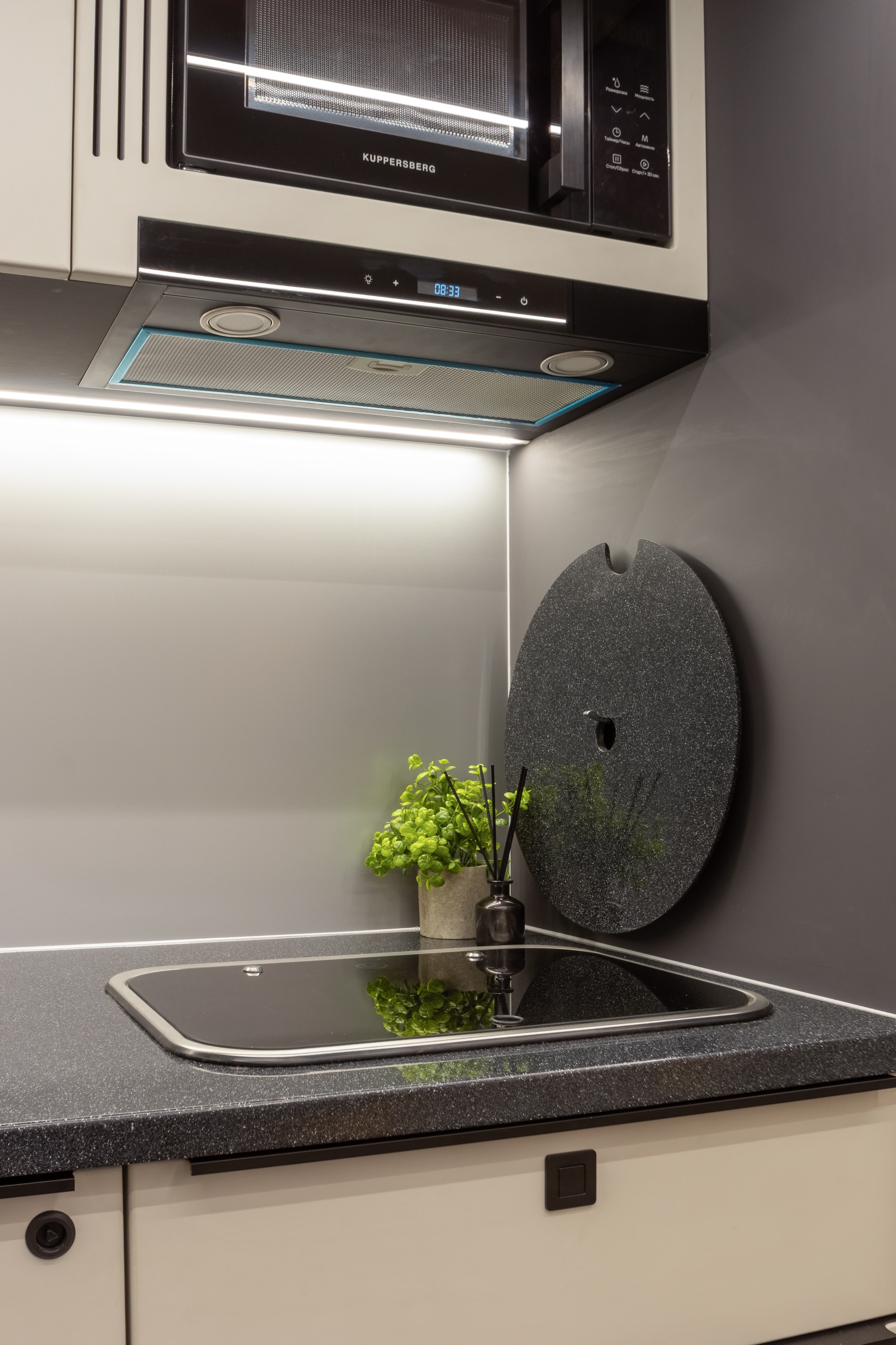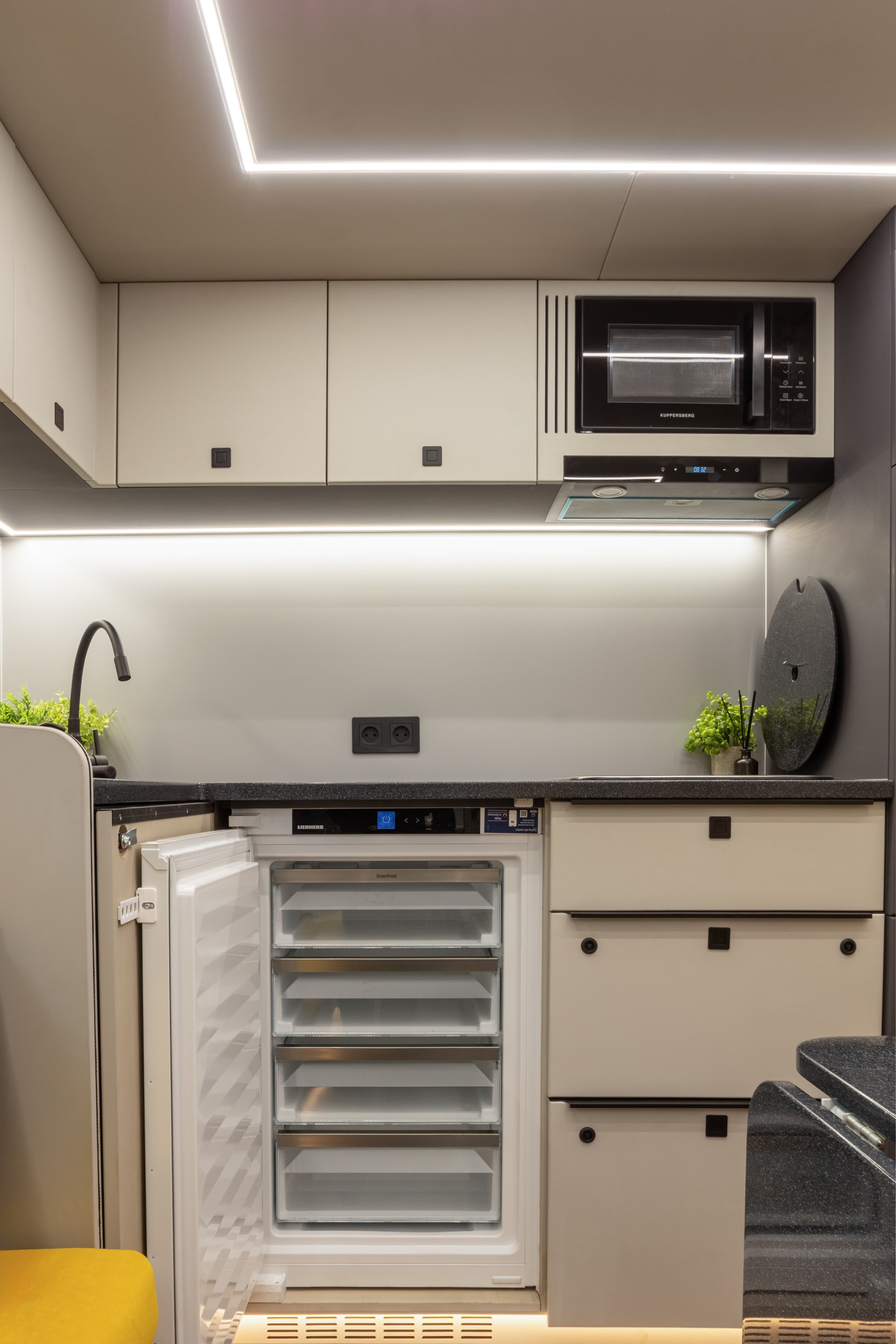 • Подсветки по периметру подвесных и напольных шкафов LED-лентой