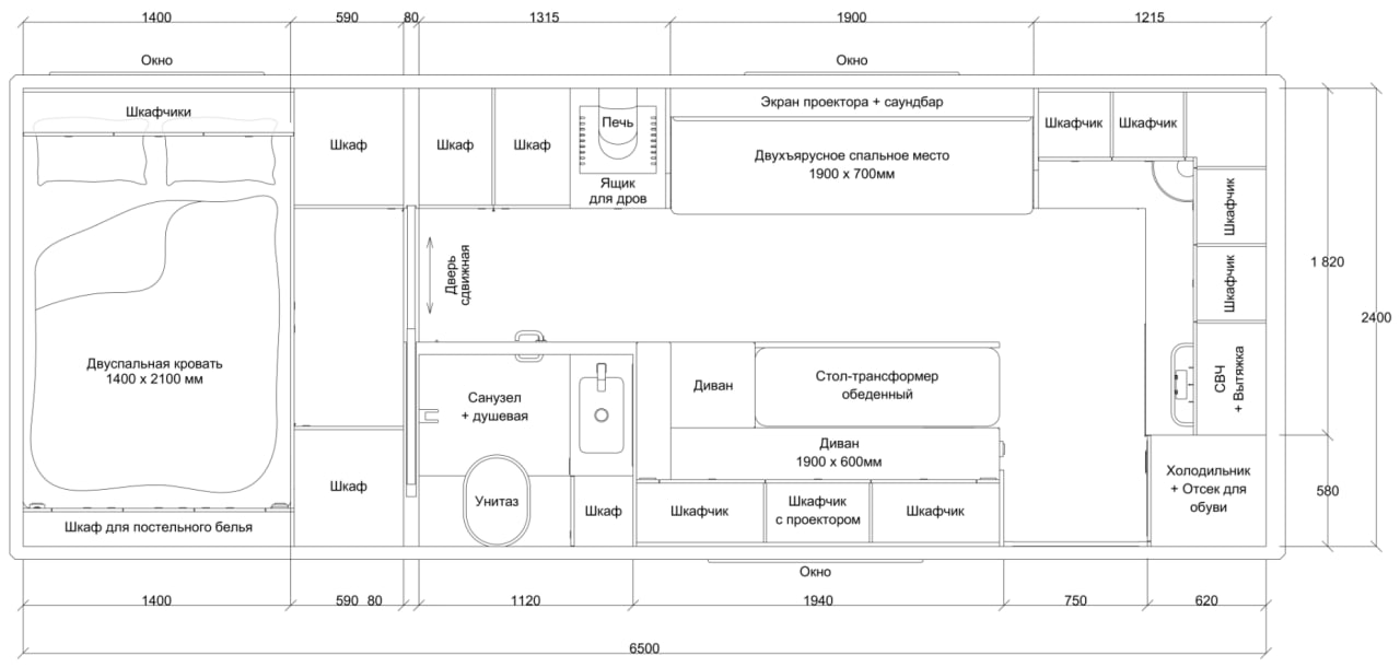 Автодом рассчитан на размещение до 6 гостей и предлагает полноценное жилое пространство: