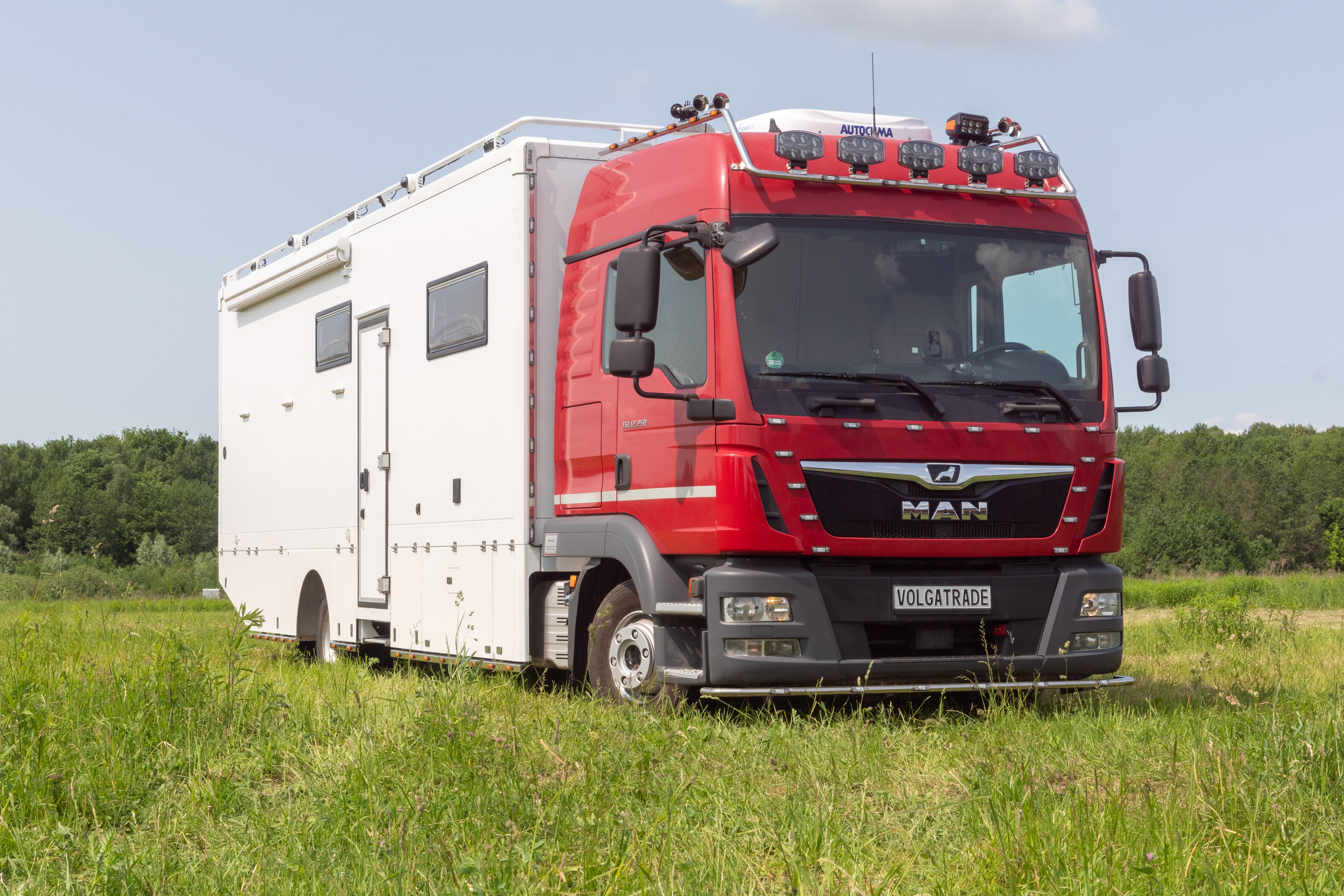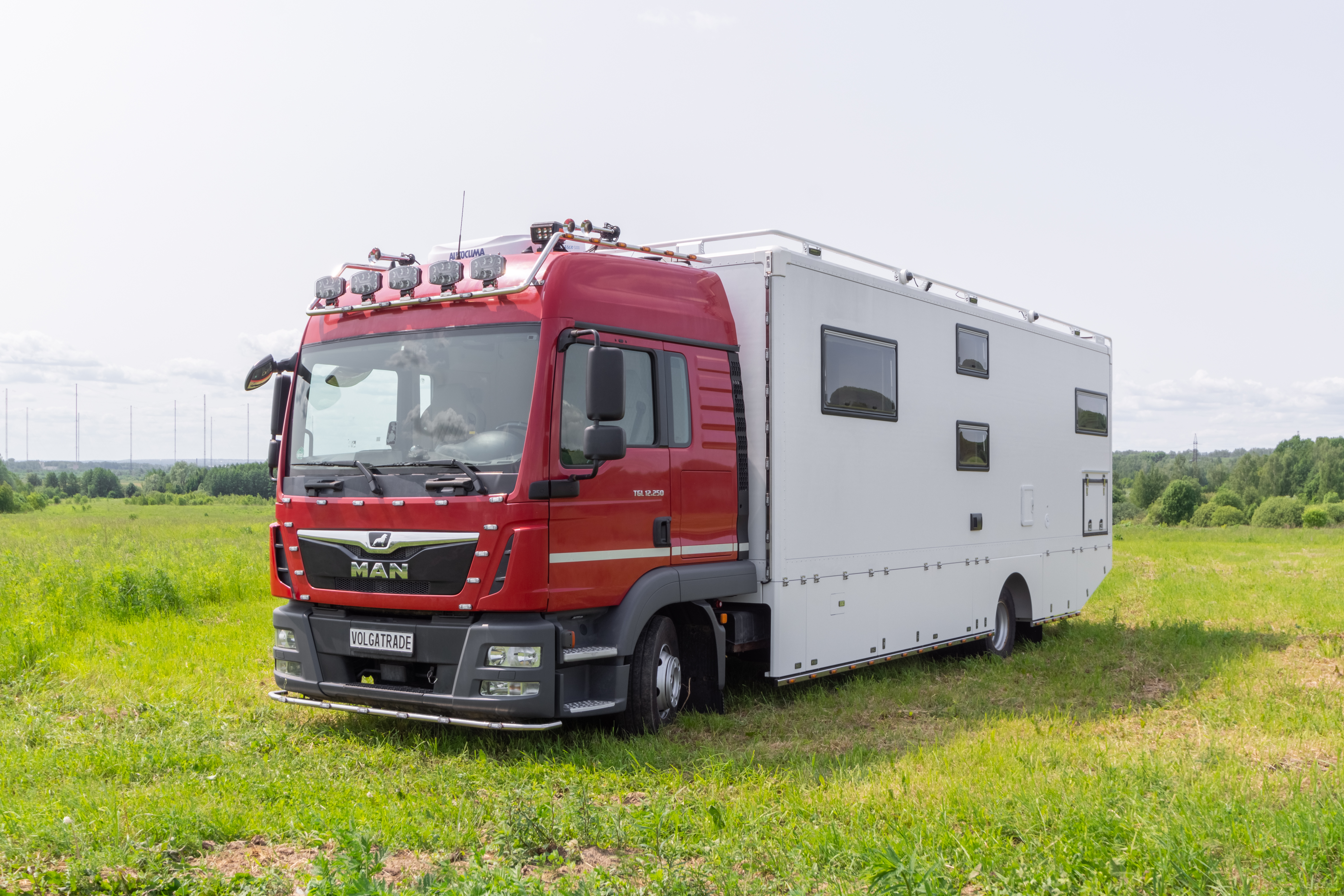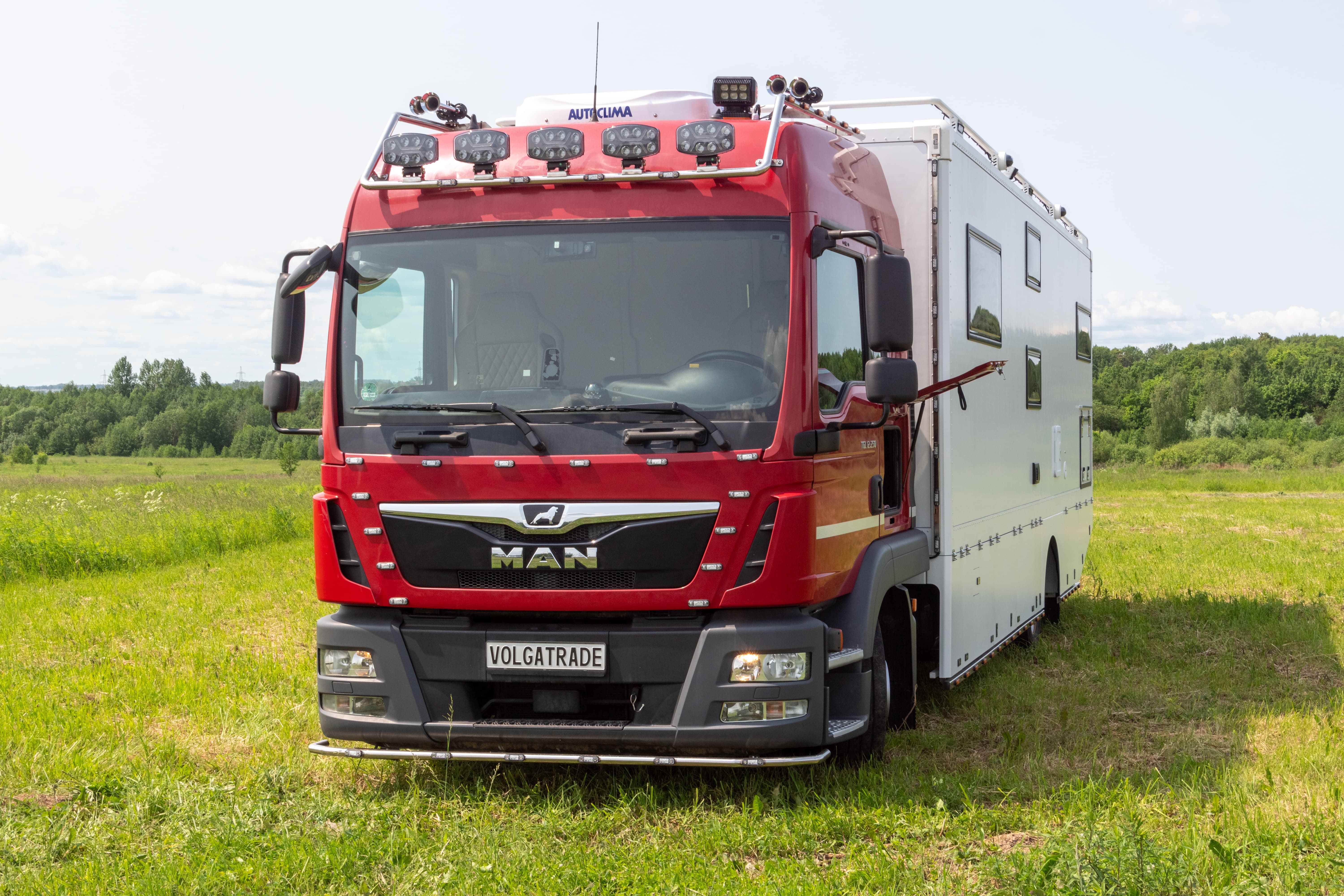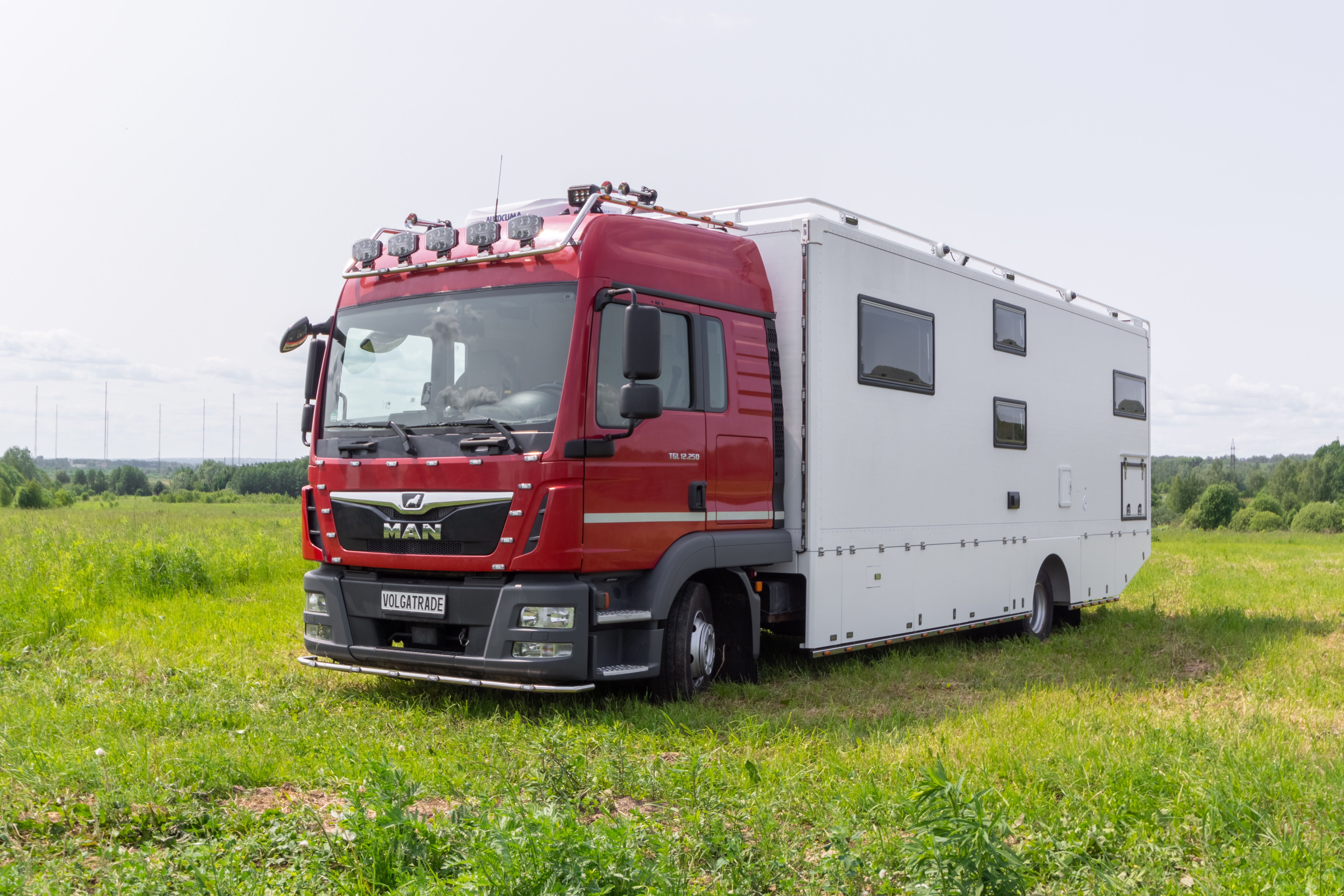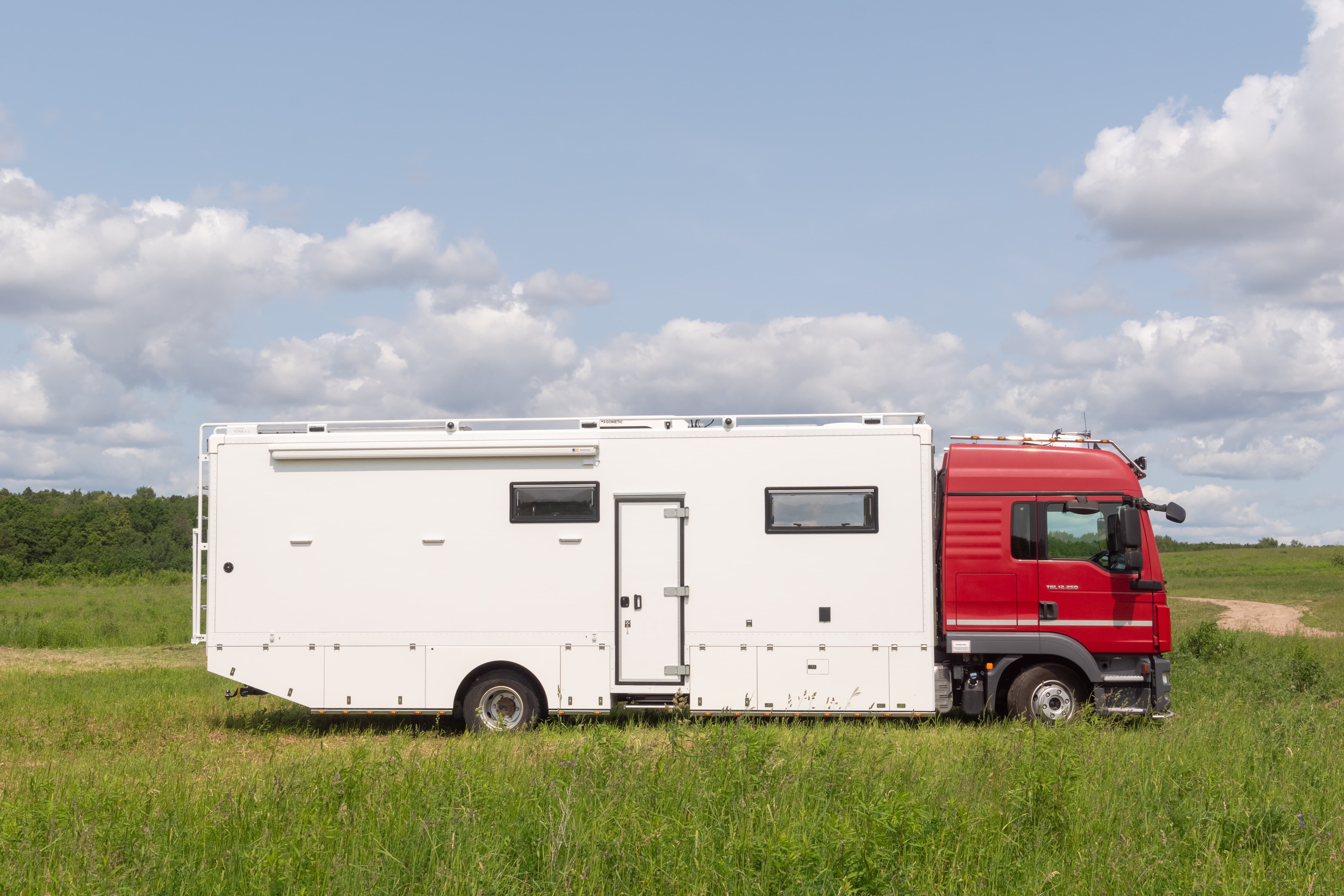 • Фальш-панели из алюминия на каркасе из нержавеющей стали по периметру автодома с местами установки габаритных огней + подъемные секции, закрывающие топливные баки, бак AdBlue, аккумуляторы и ресиверы.