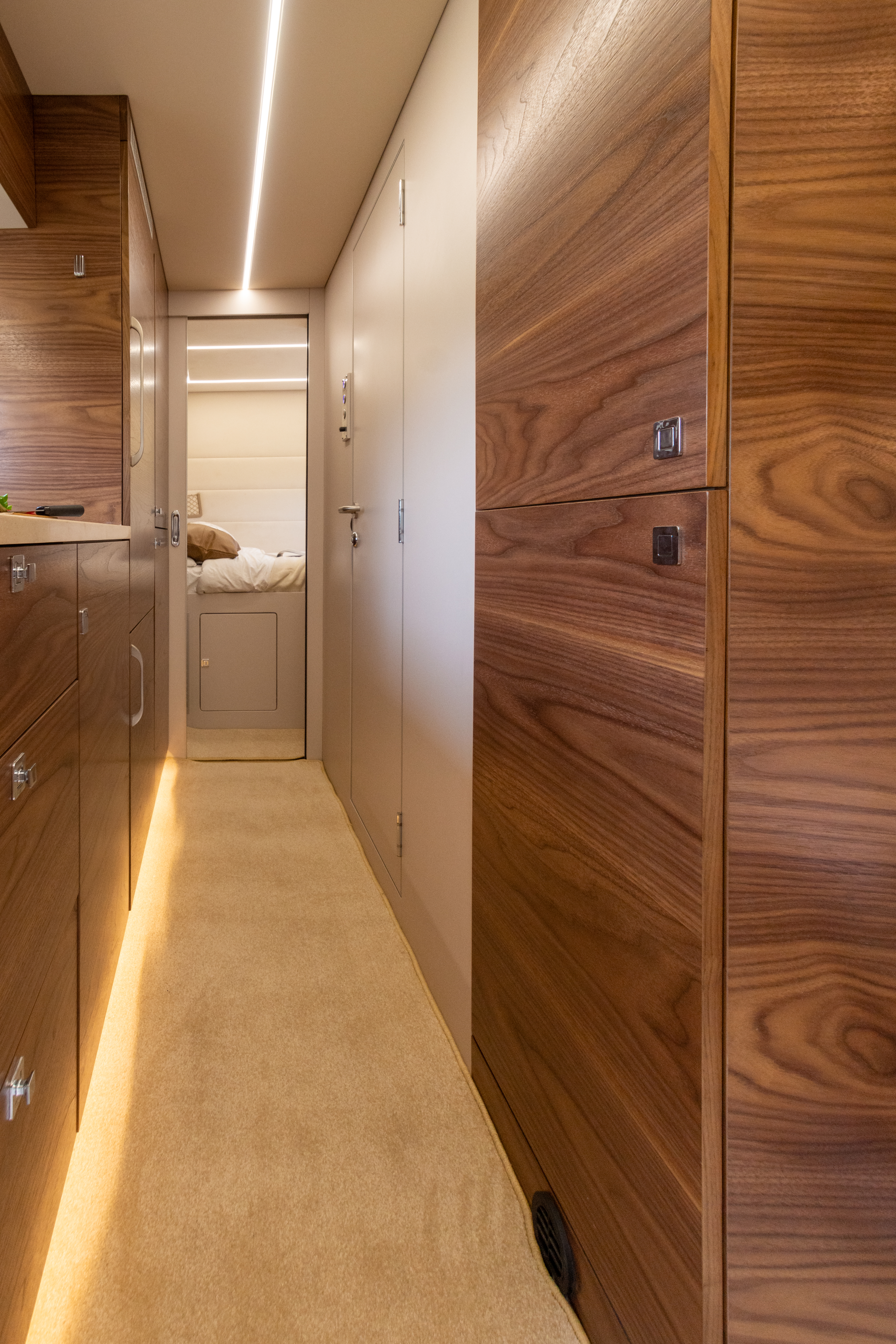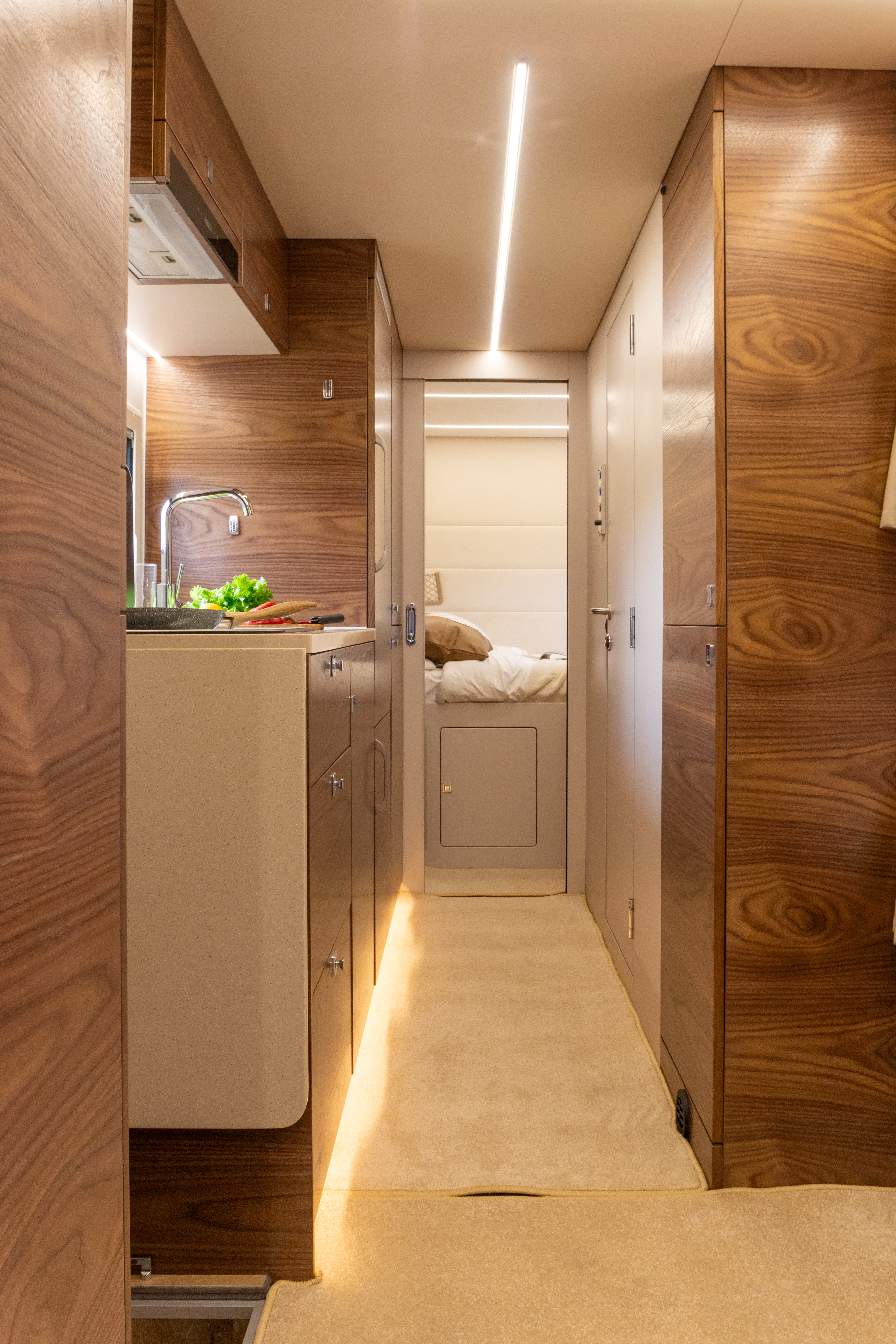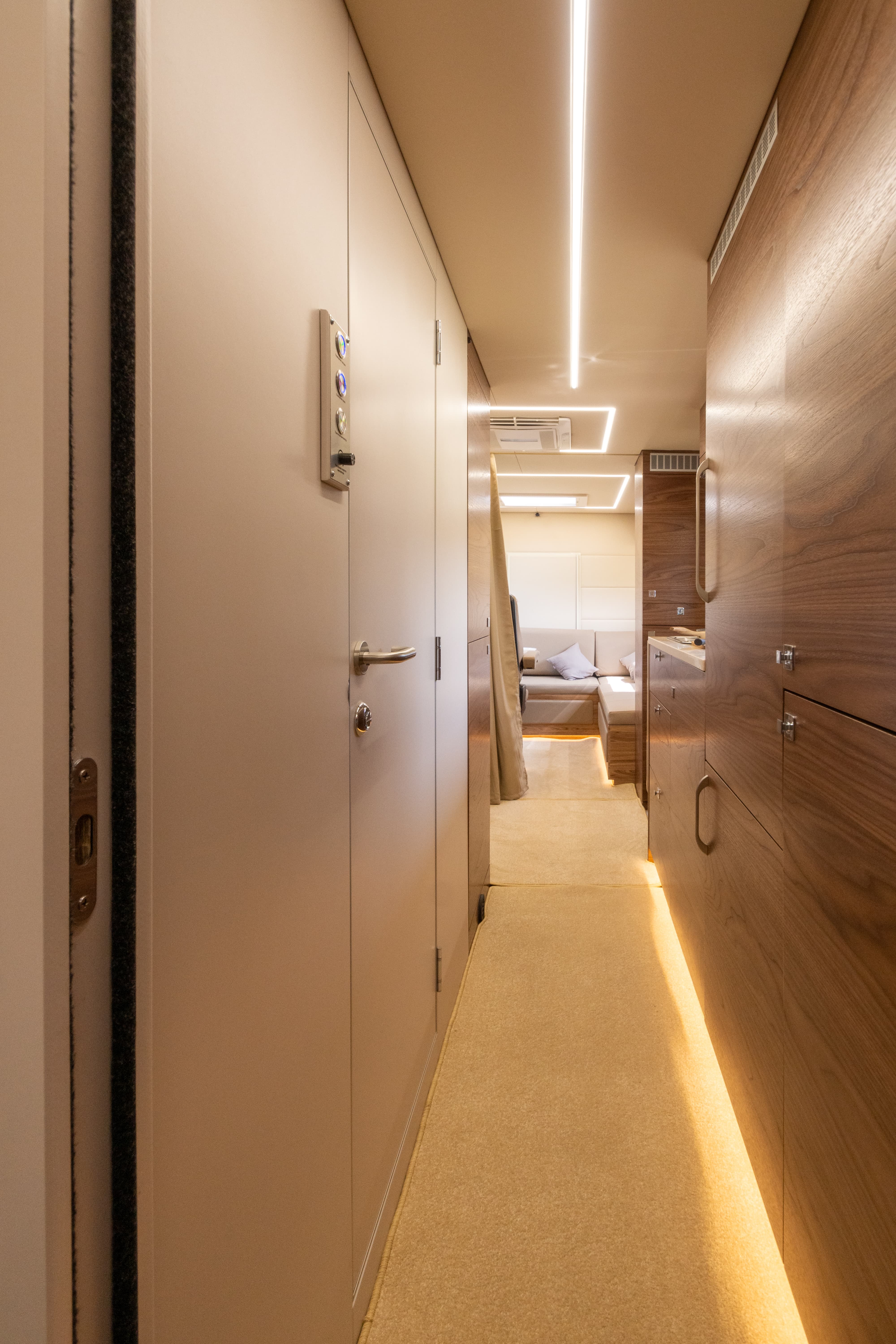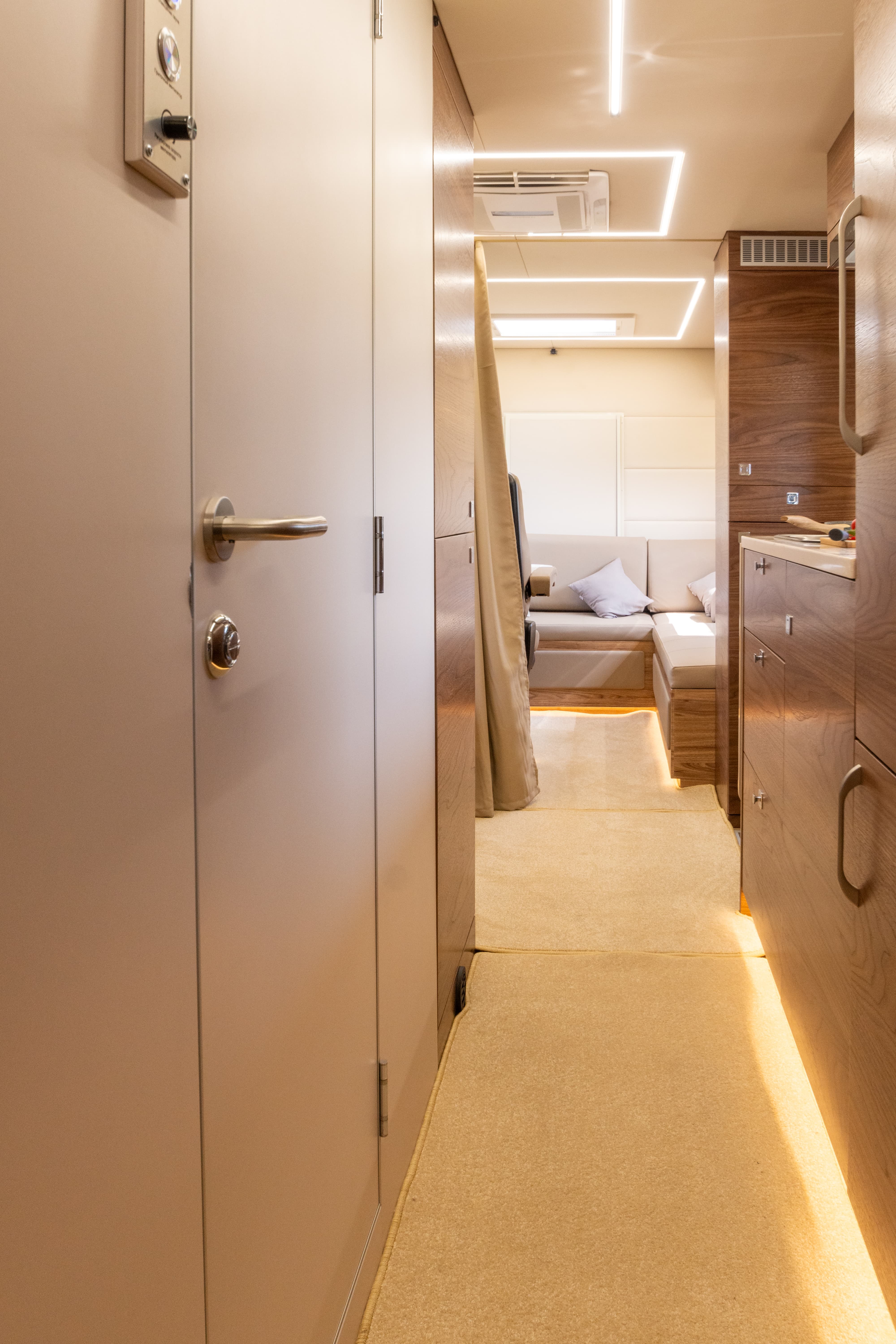 • Перегородка между спальным отсеком со сдвижной дверью с замком, итегрированное зеркало во весь рост