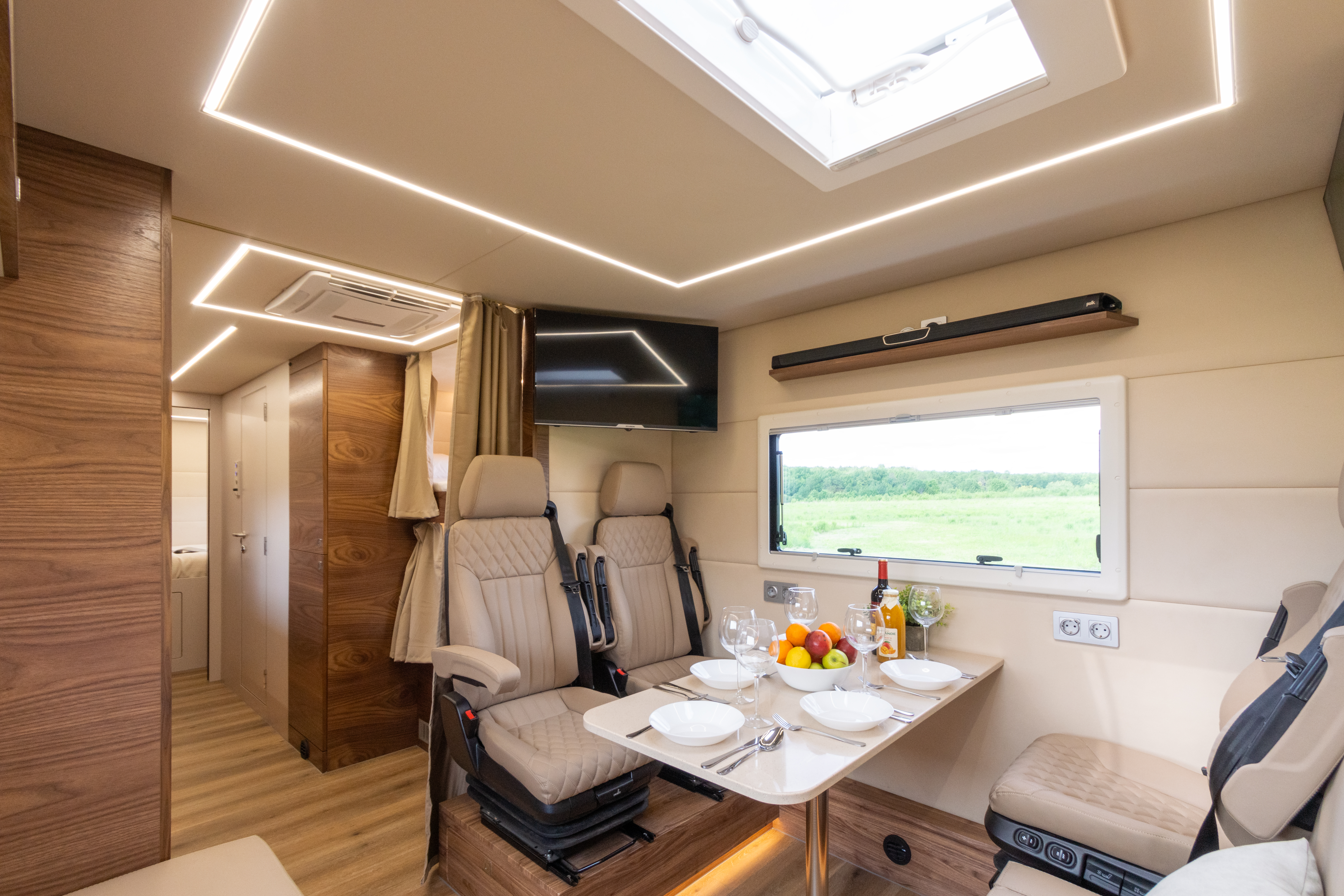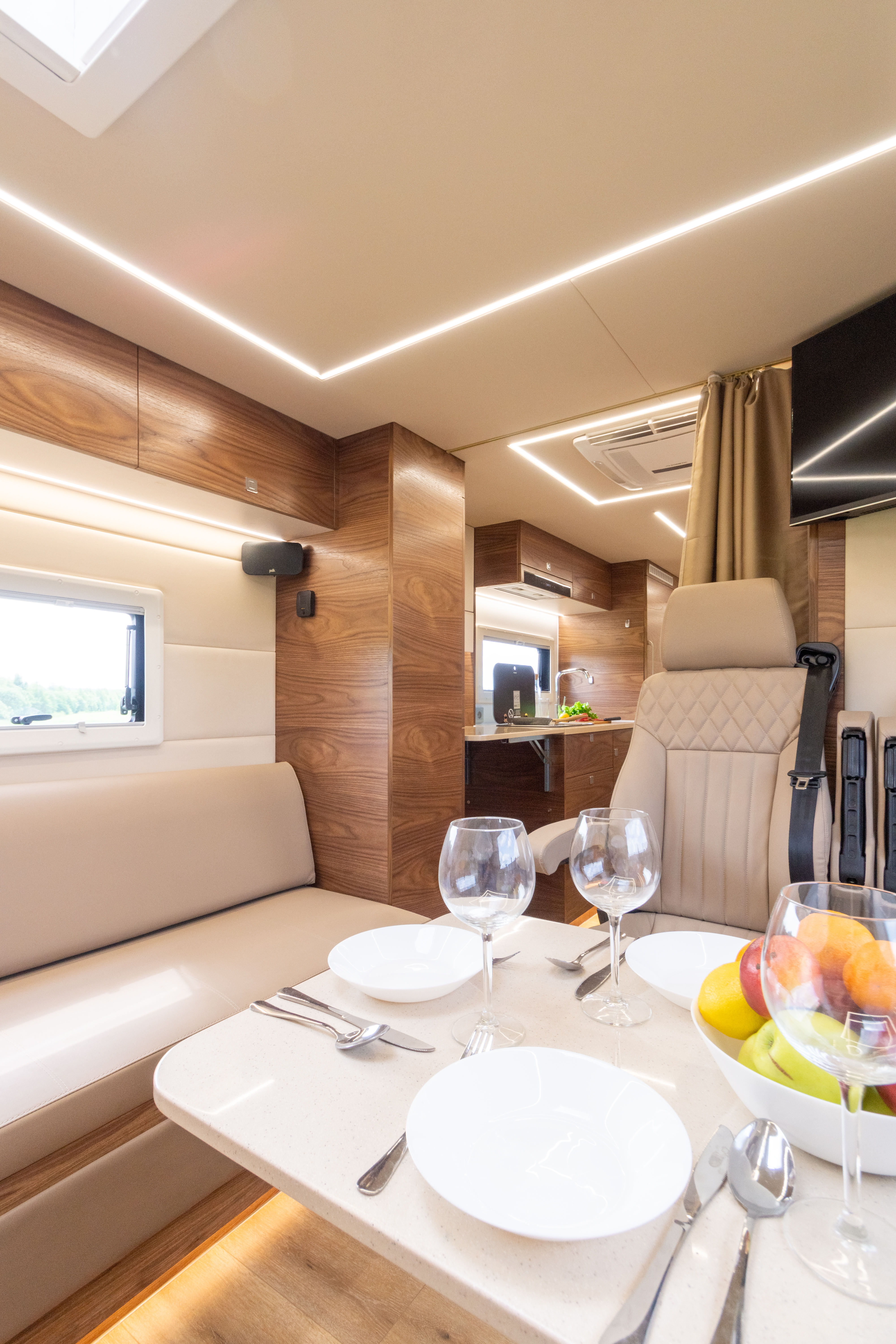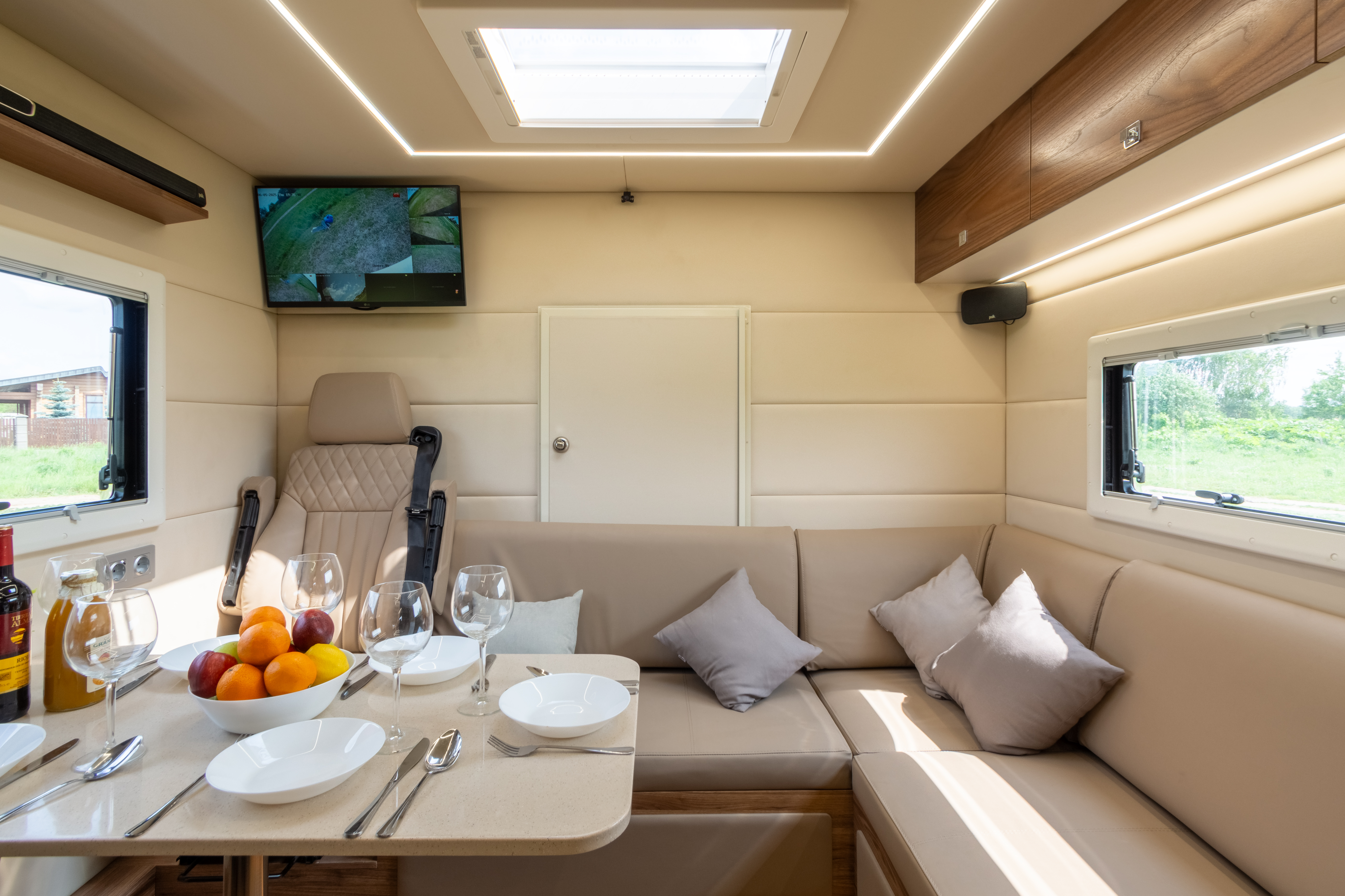 Вся мебель в автодоме производится только из влагостойкой березовой фанеры высших сортов, покрытой натуральным шпоном