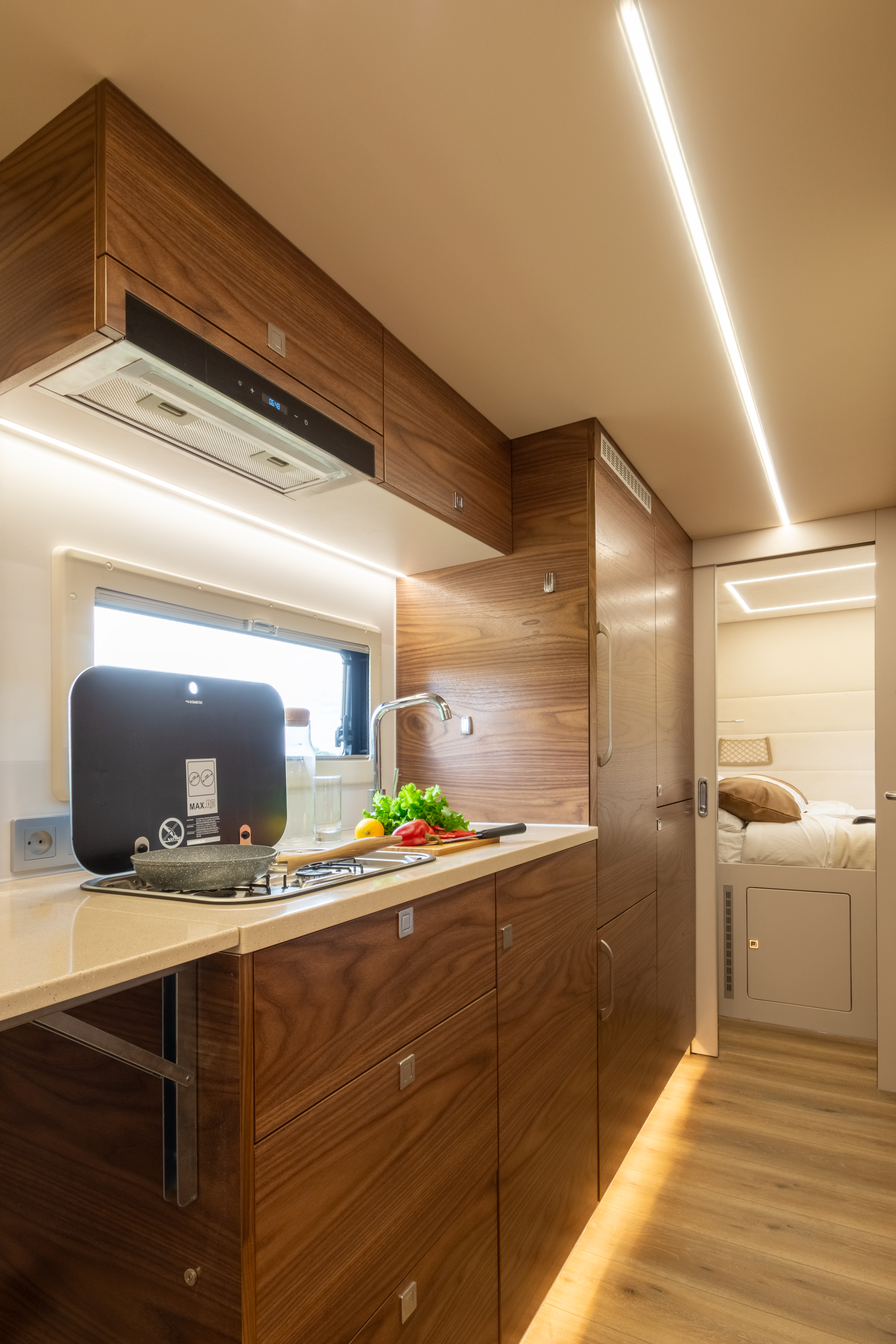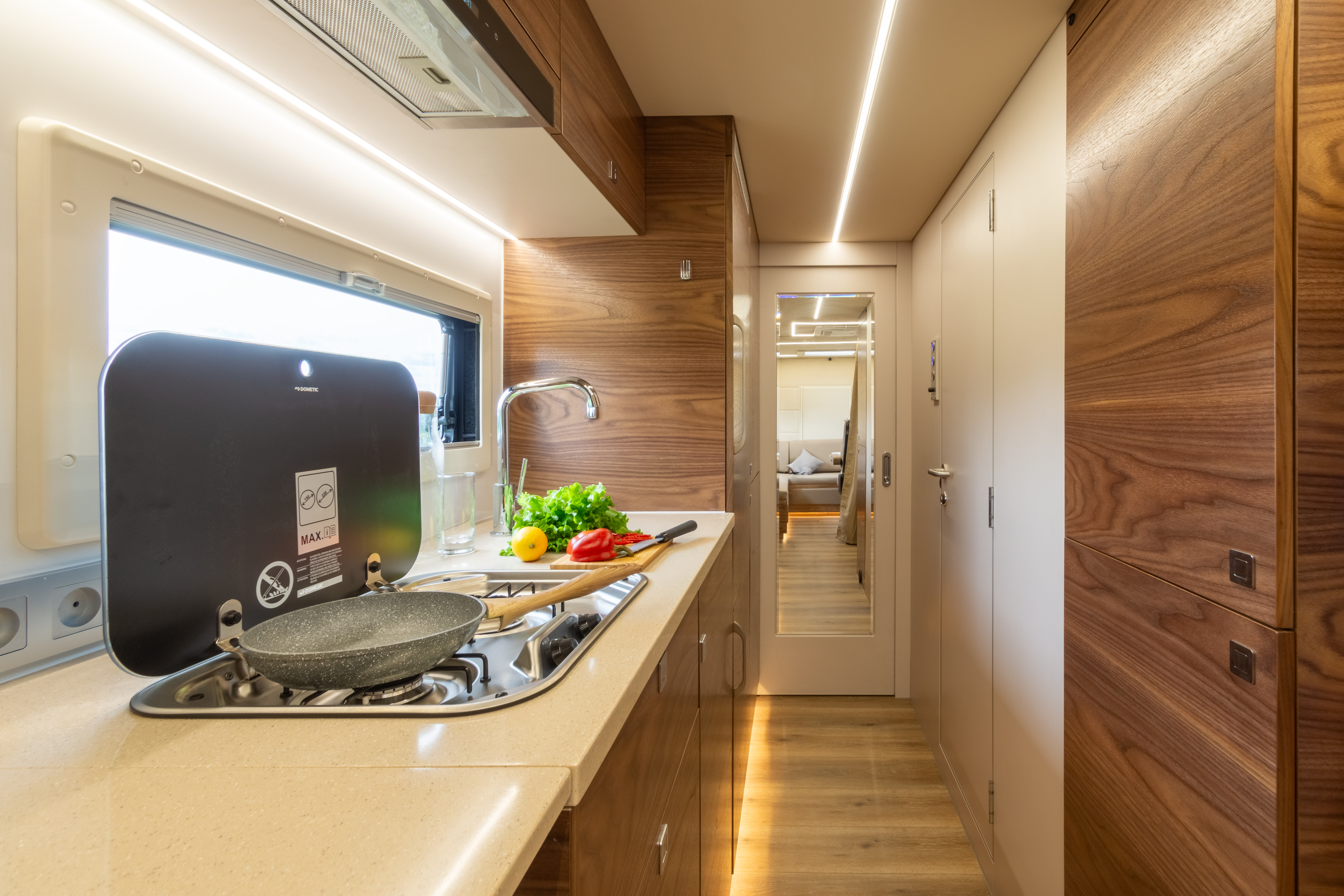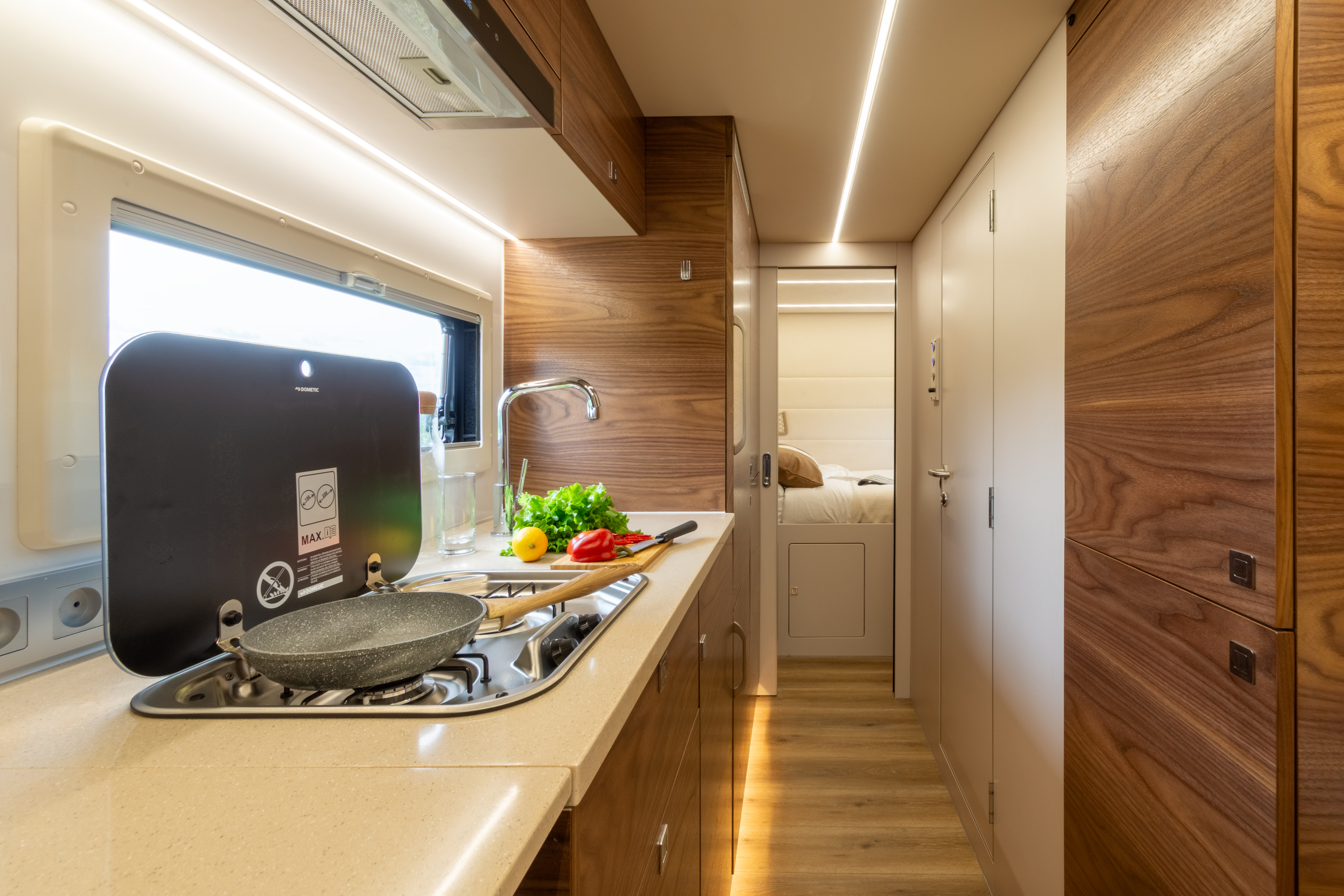 Вся мебель в автодоме производится только из влагостойкой березовой фанеры высших сортов, покрытой натуральным шпоном