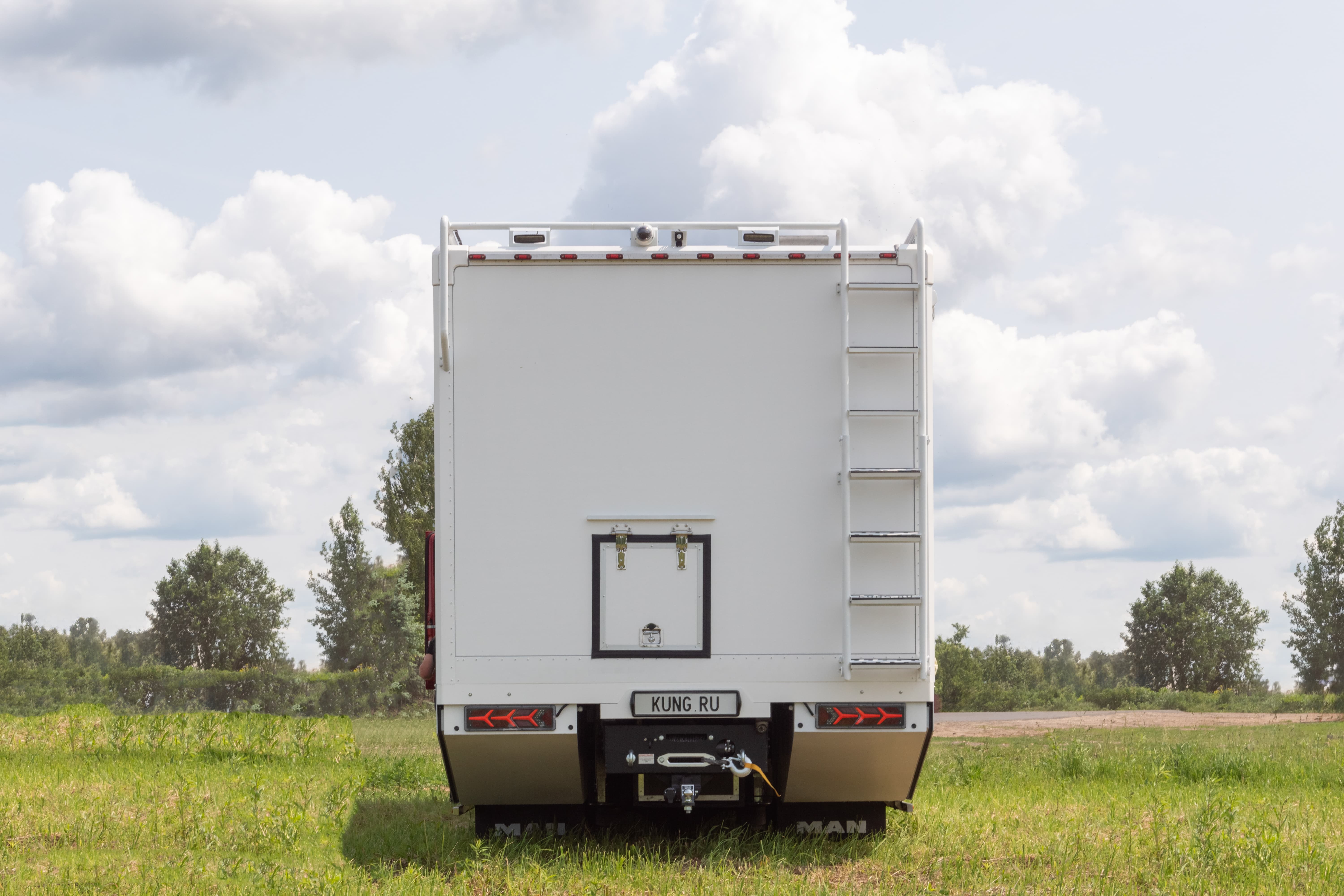 • Нержавеющая труба на задней стенке фургона с предусмотренным местом установки дополнительных габаритных огней