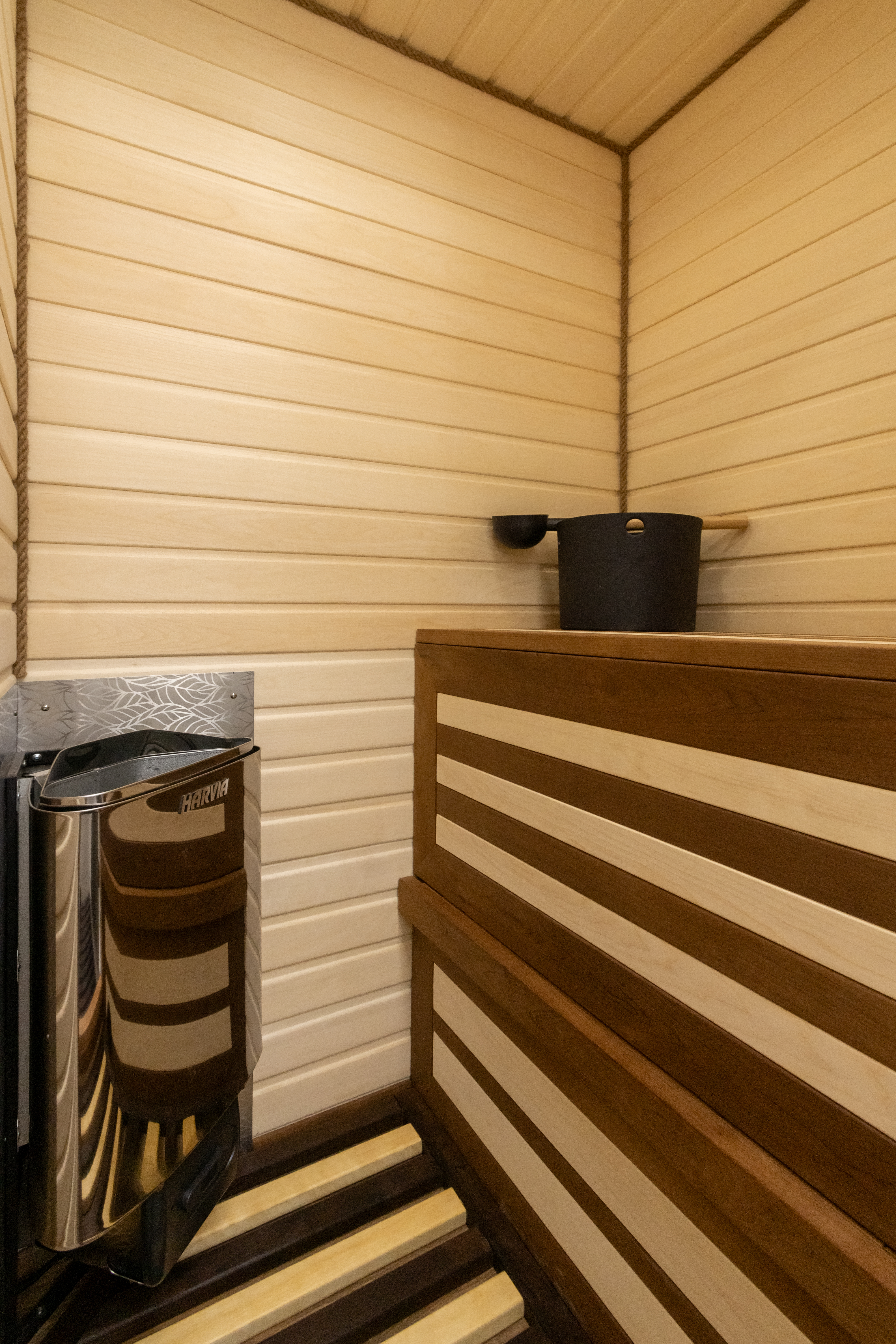 • Полок, изготовленный из дерева Абаши + липа (свободное пространство под ним). Выдвижная ступень