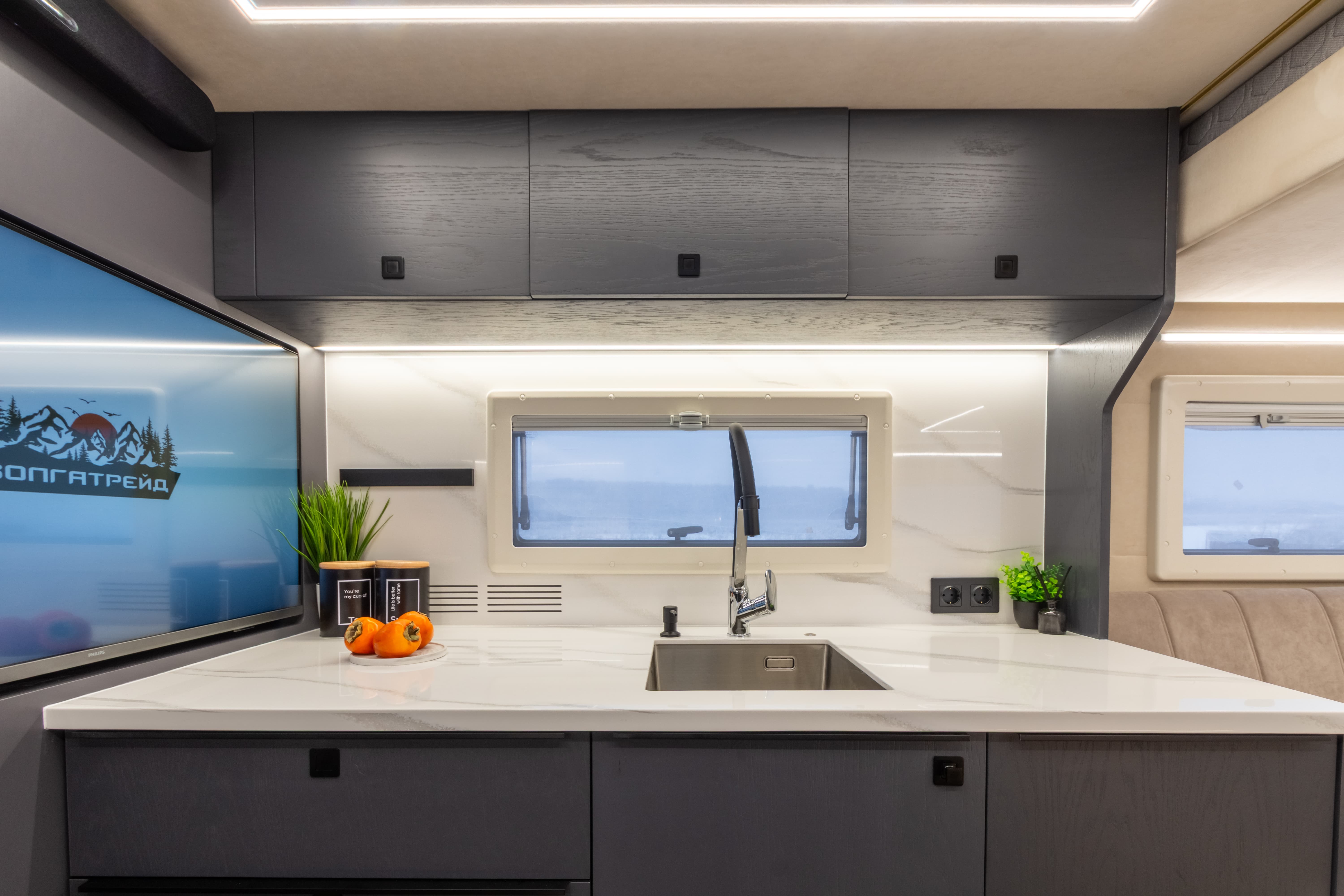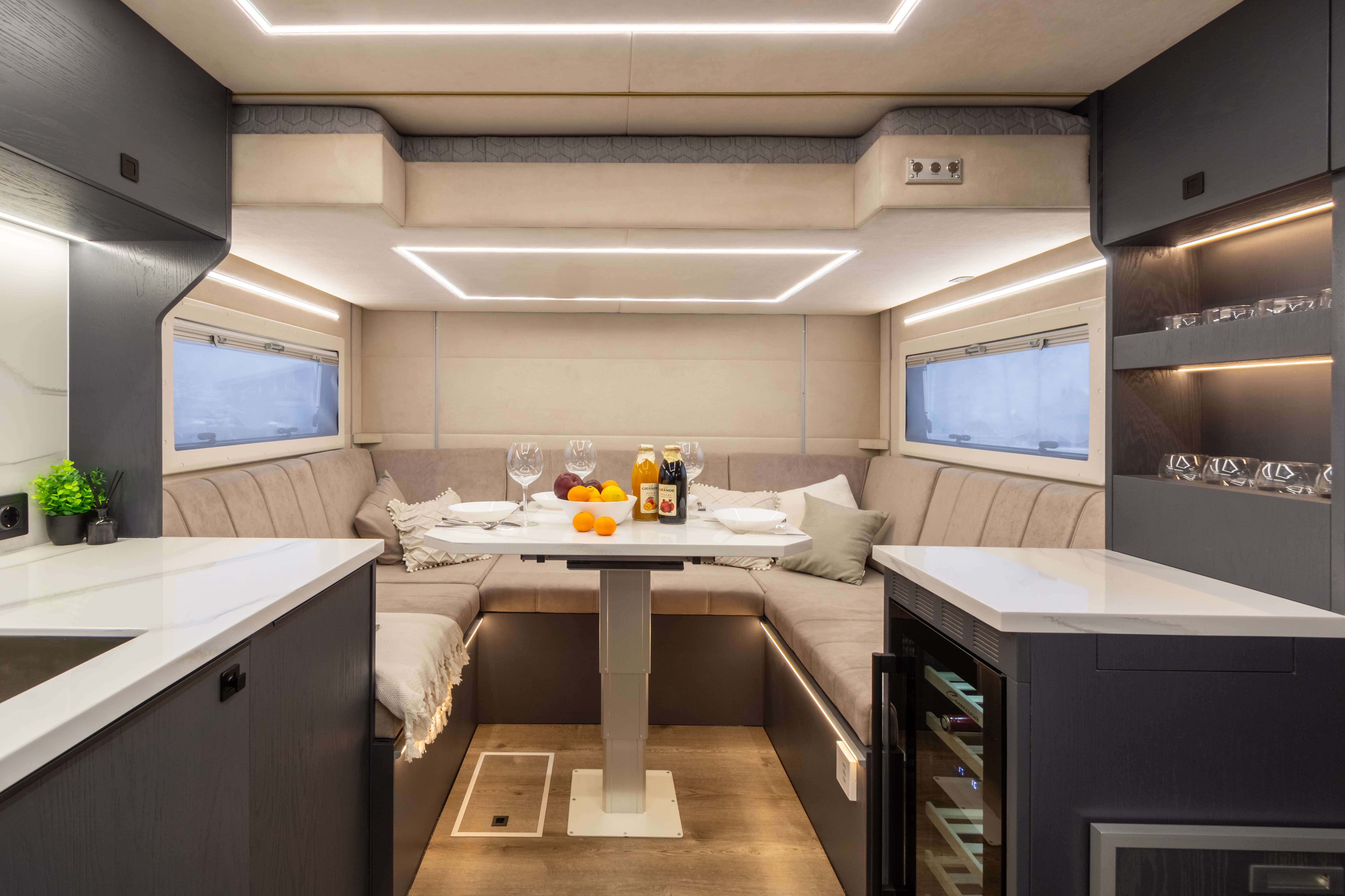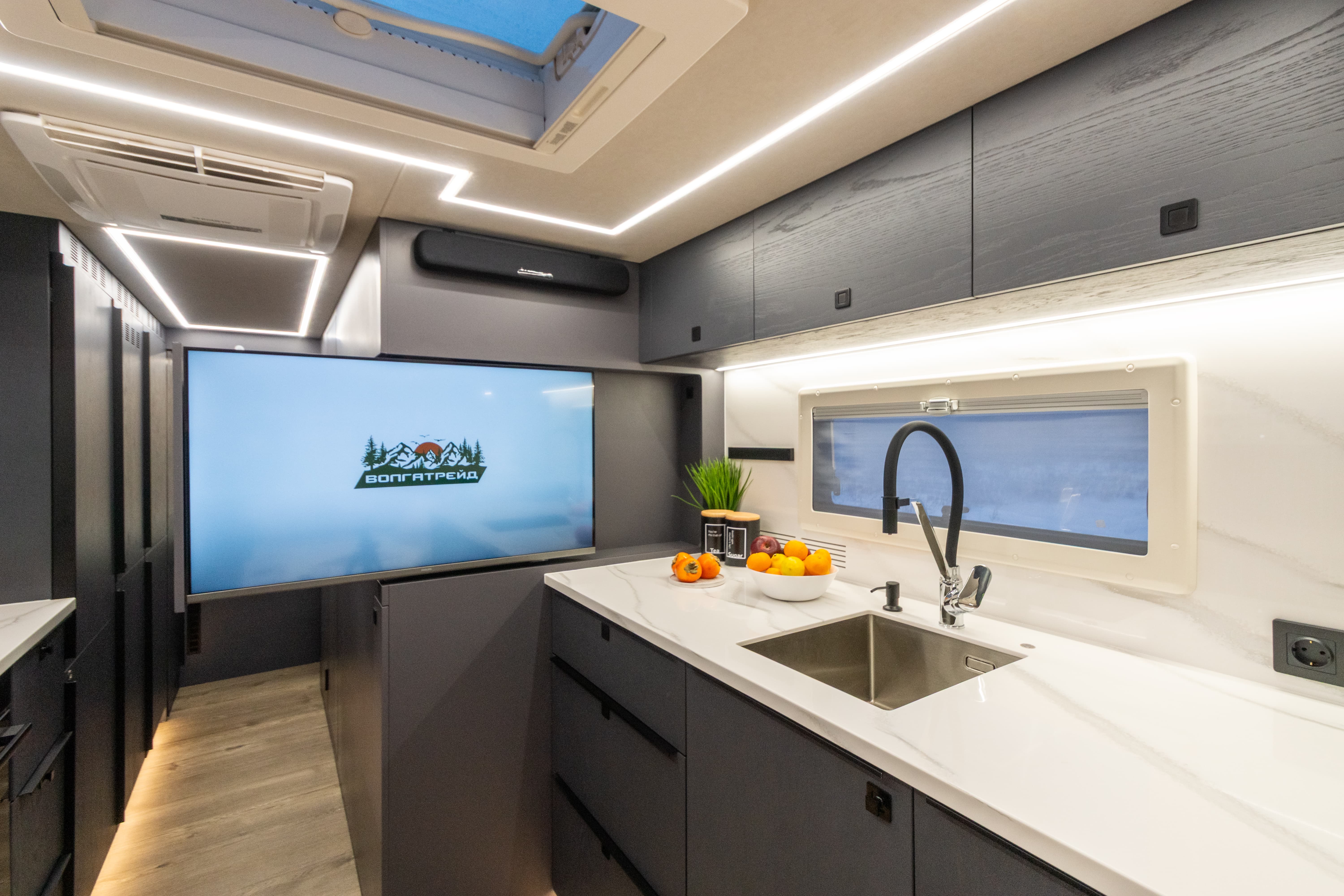Экстерьер сочетает брутальность и функциональность — автодом готов к самым сложным маршрутам. А интерьер радует домашним уютом, премиальной отделкой натуральным шпоном и продуманной эргономикой. Внутри вас ждёт: