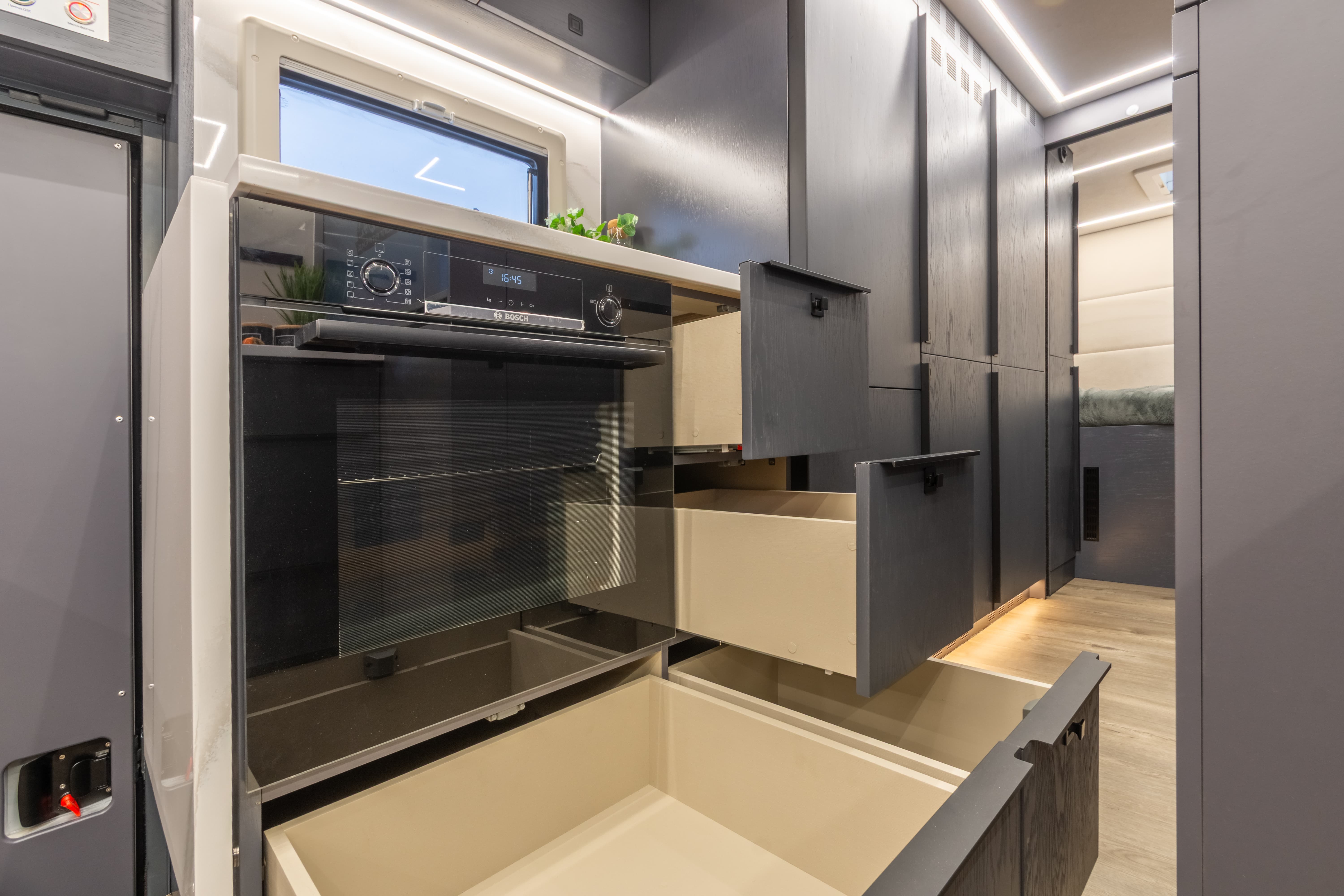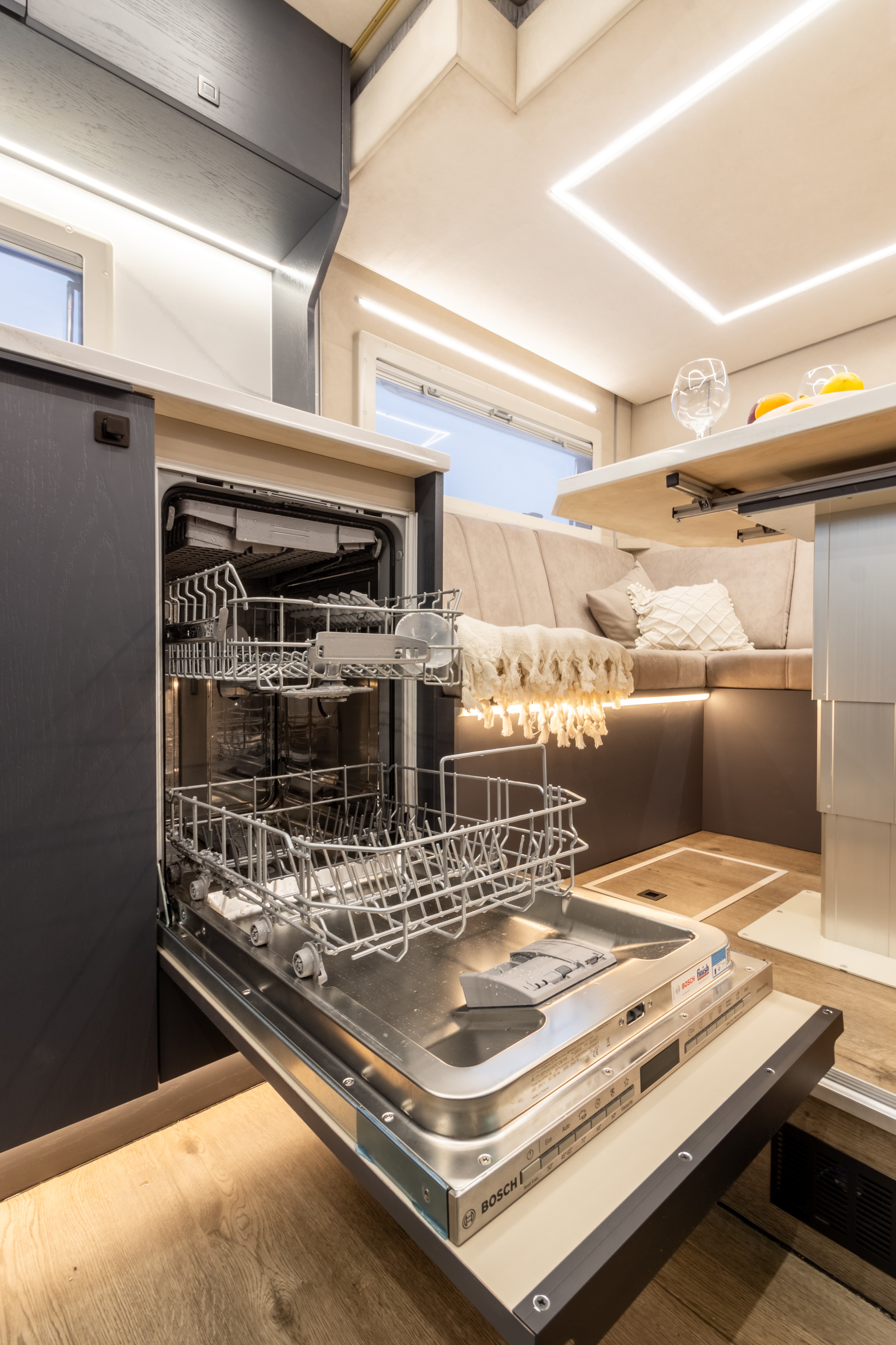 • Вся мебель в автодоме производится только из влагостойкой березовой фанеры высших сортов, покрытой натуральным шпоном