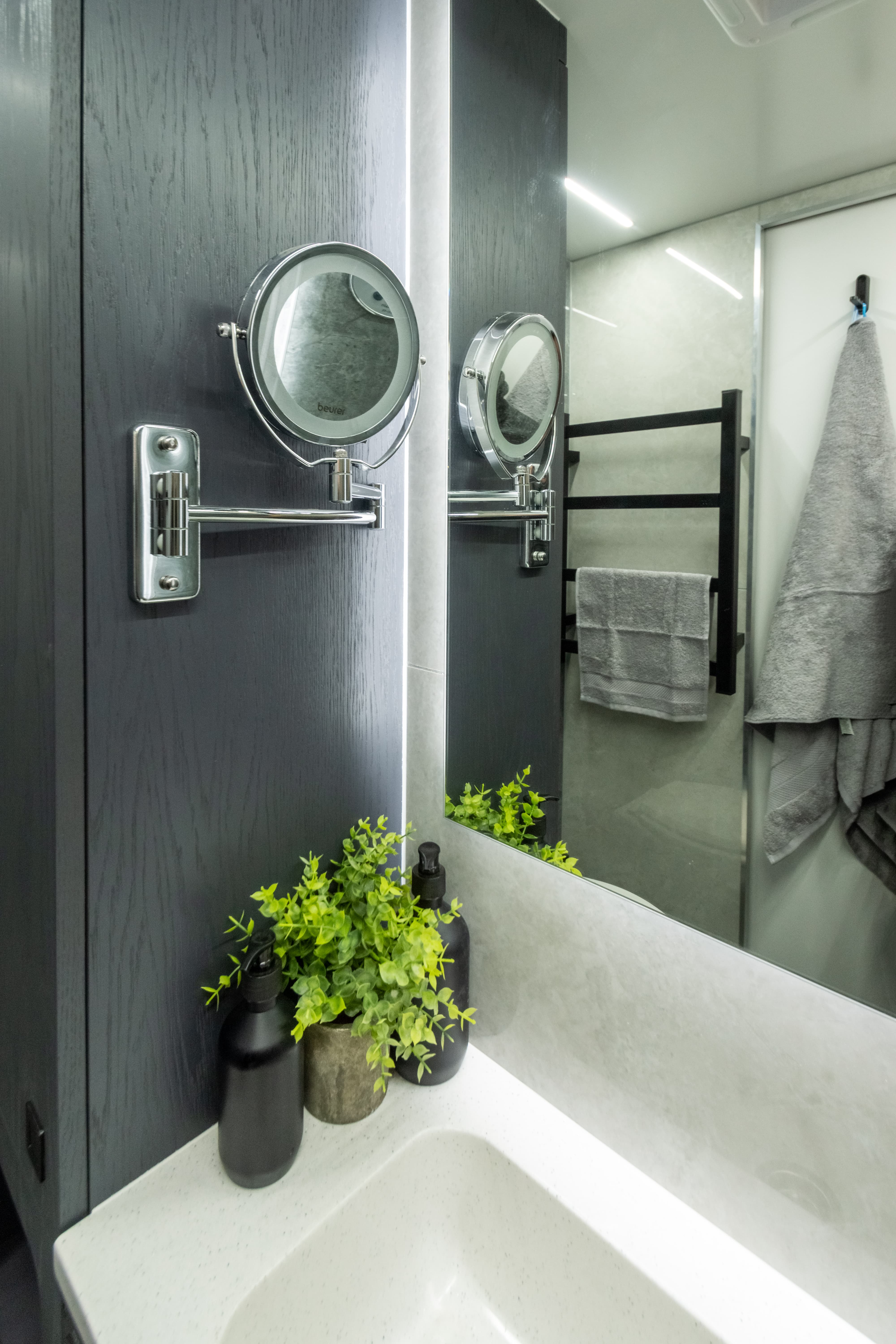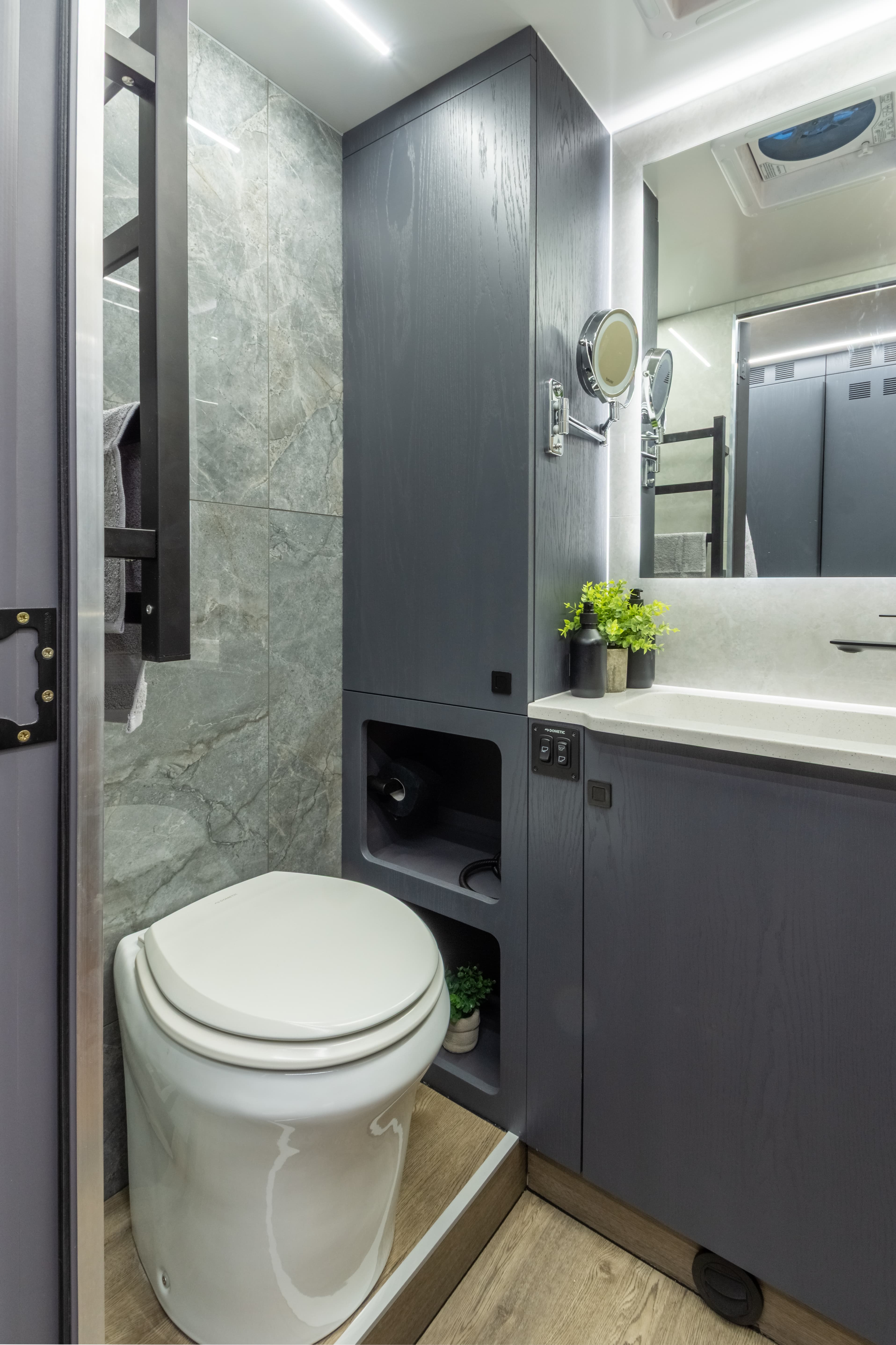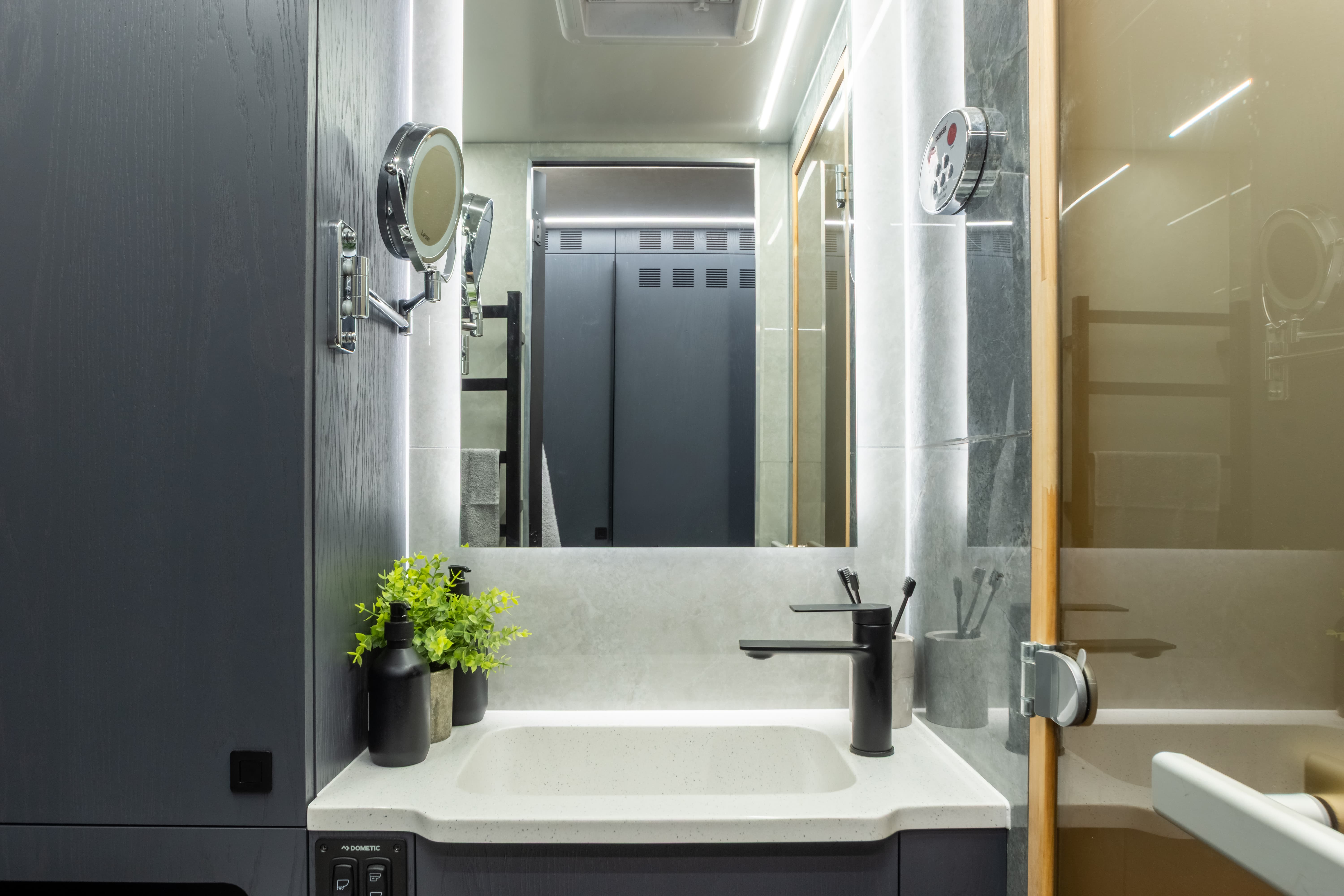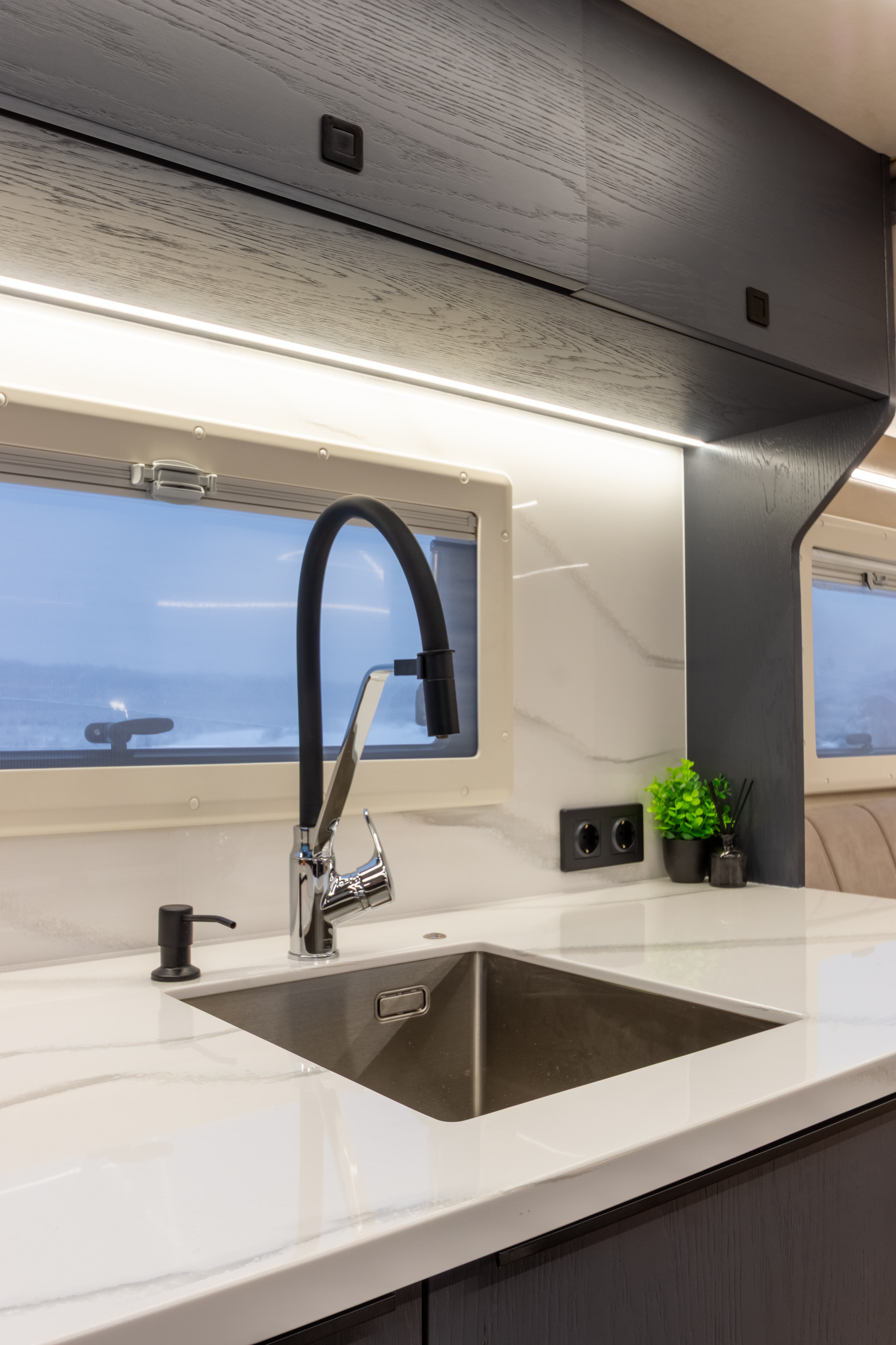 • Фальш-панели из алюминия на каркасе из нержавеющей стали по периметру автодома