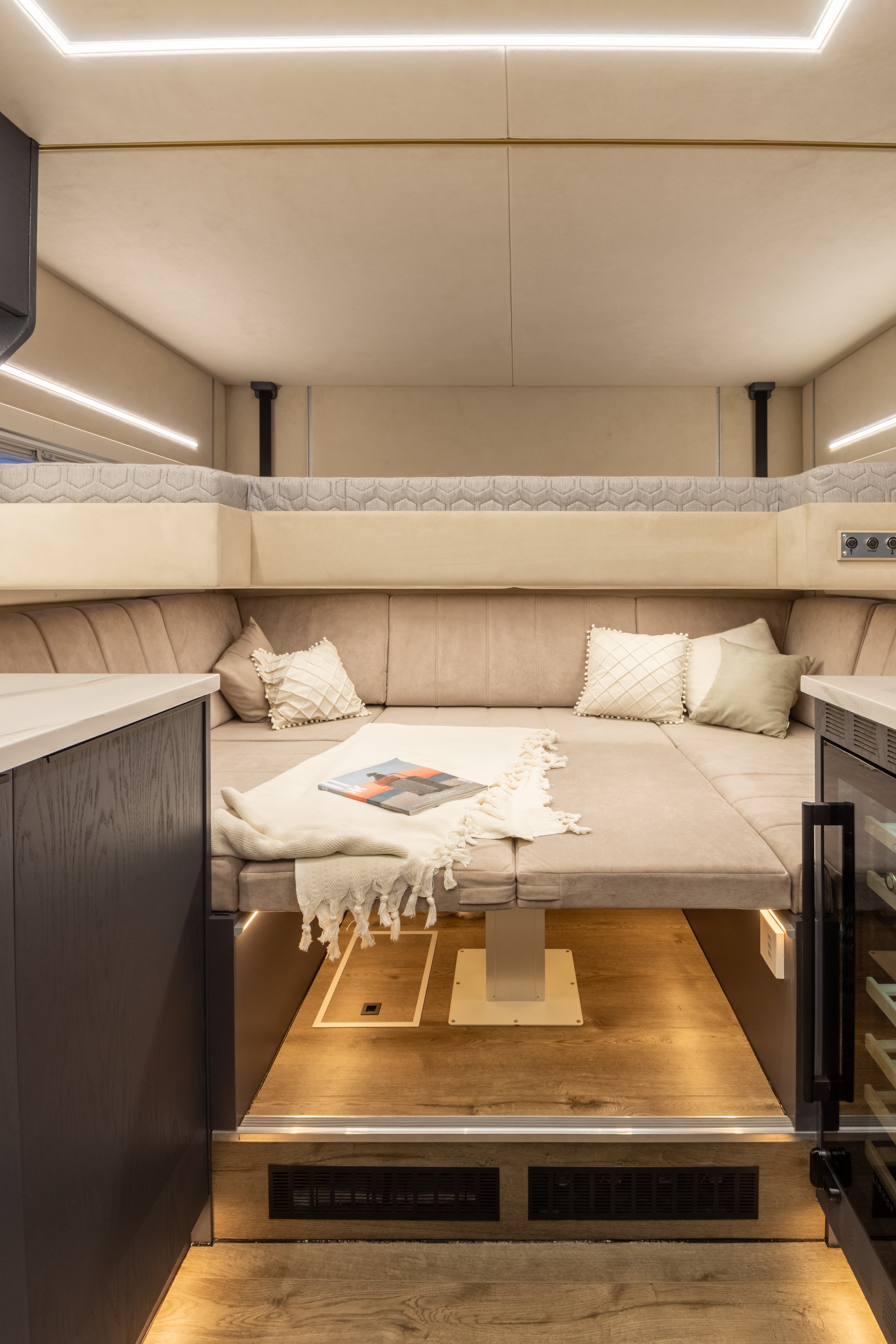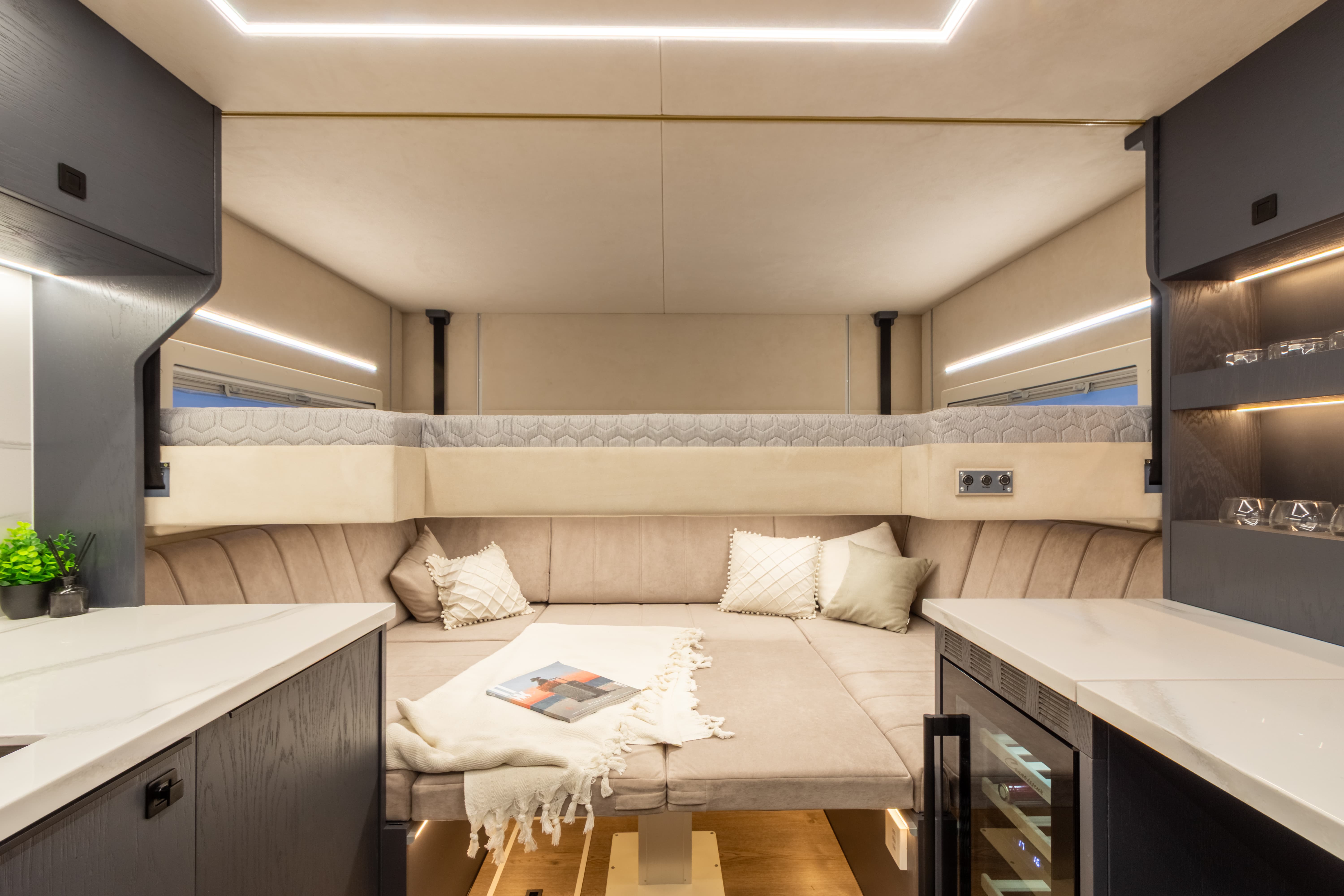- 4 спальных места + дополнительная опускающаяся кровать с электроприводом