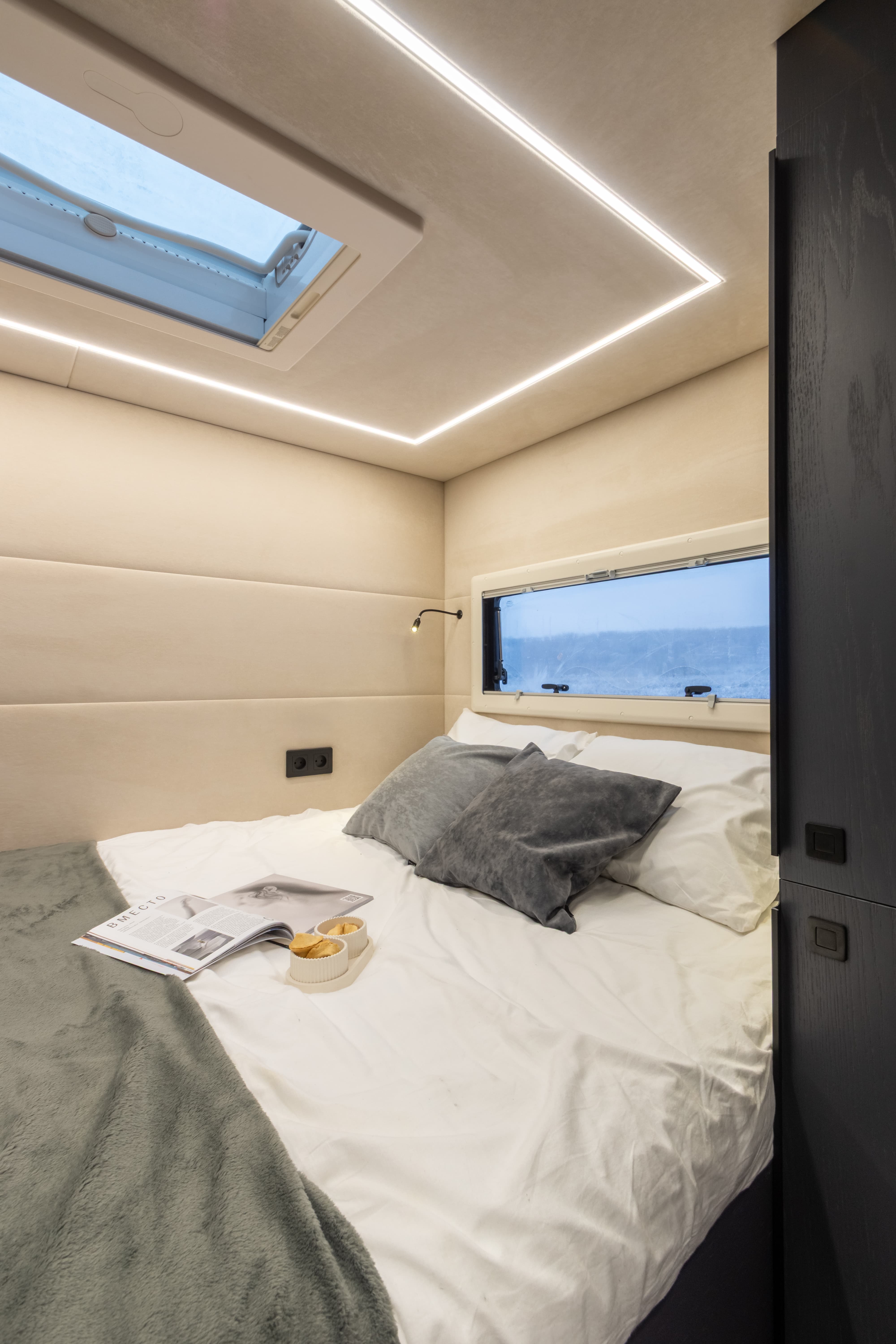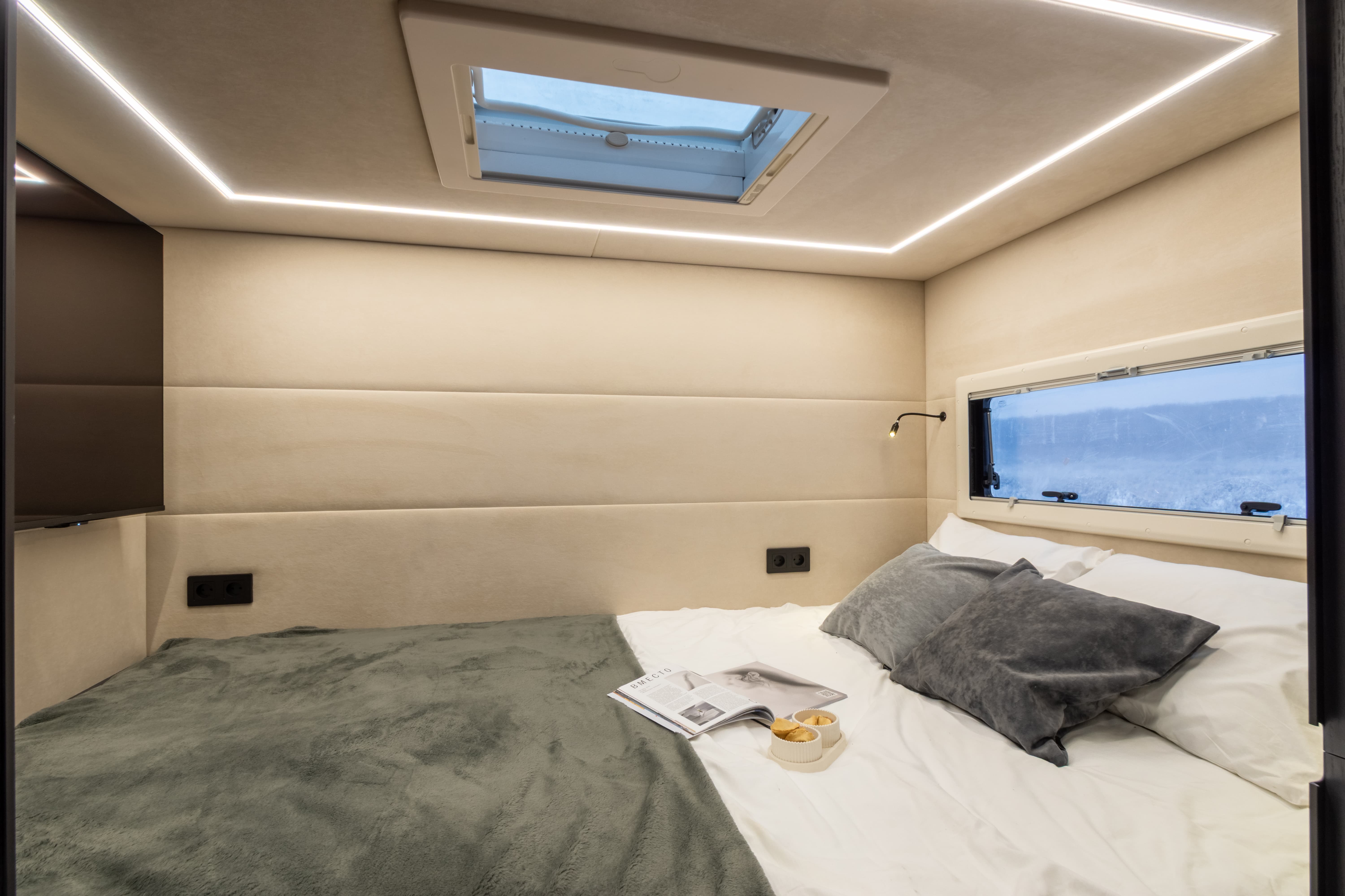 • Верхнее спальное место опускающееся с электроприводом
