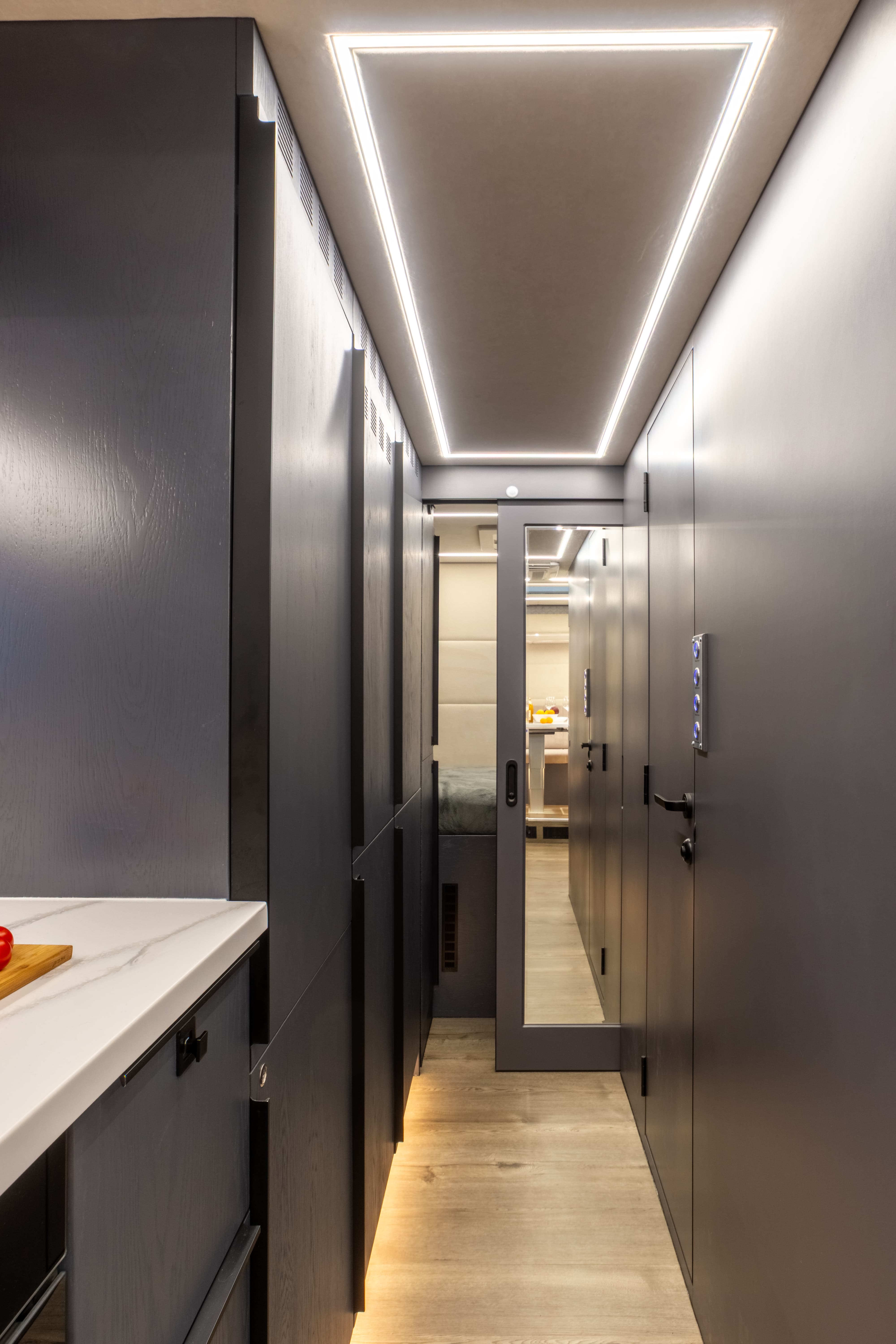 • Перегородка между спальным отсеком со сдвижной дверью с замком, зеркало